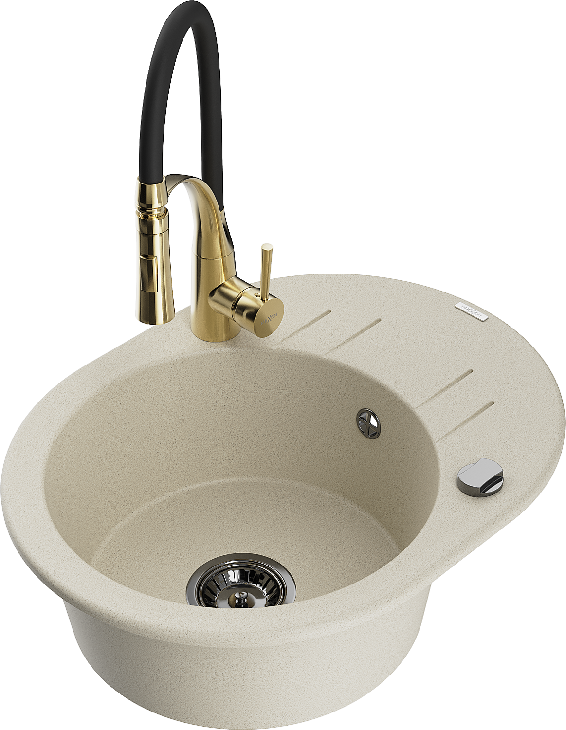 Mexen Kevin 1-medencés gránit mosogató csepegtetővel és Aster konyhai csapteleppel, bézs - 6517-69-73450-57-B