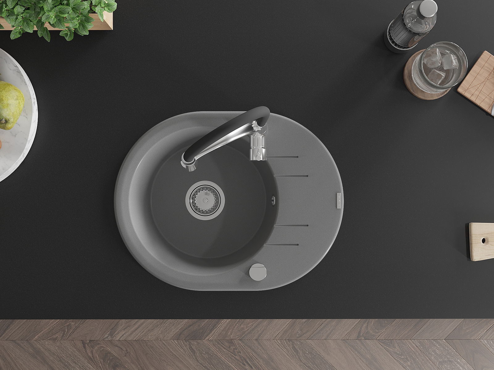 A mosogató kiváló minőségű gránitból készül. Ez egy elegáns és mindenekelőtt minden konyhához praktikus kiegészítés, stílusától függetlenül. A kiváló minőségű és a gránit tartósság biztosítja a sok éves használatát.