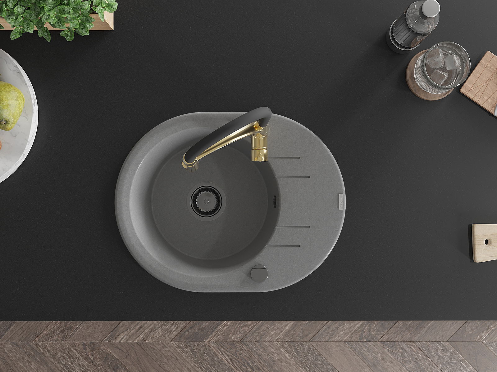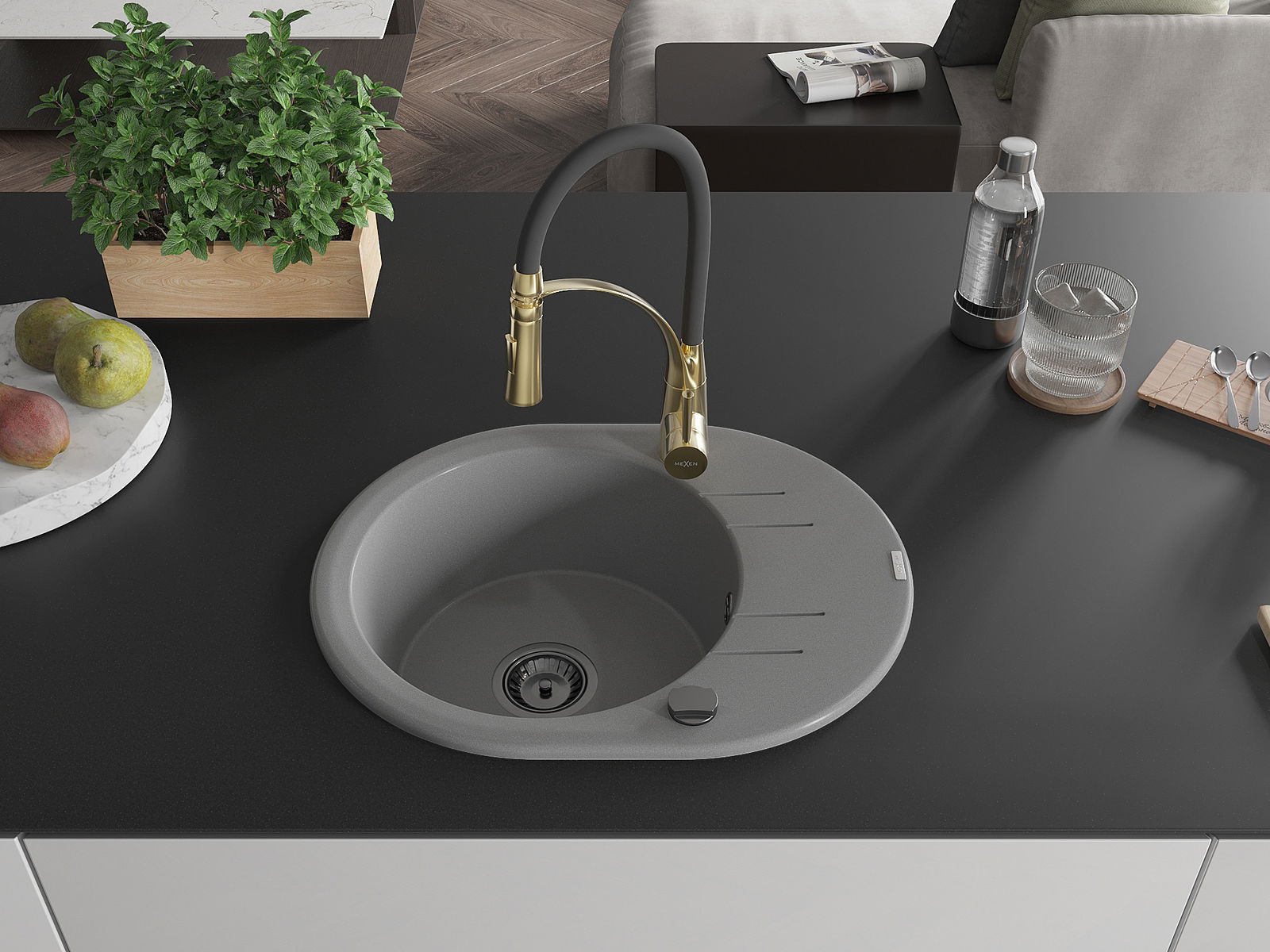 A mosogató magas minőségű gránitból készült. Elegáns, de mindenekelőtt praktikus kiegészítője minden konyhának, függetlenül annak stílusától. A gránit magas minősége és tartóssága hosszú távú használatot biztosít.
