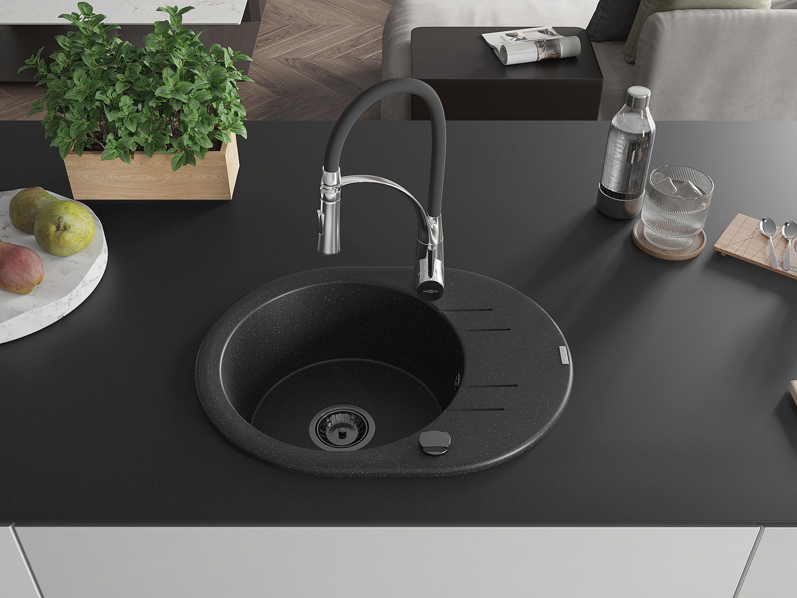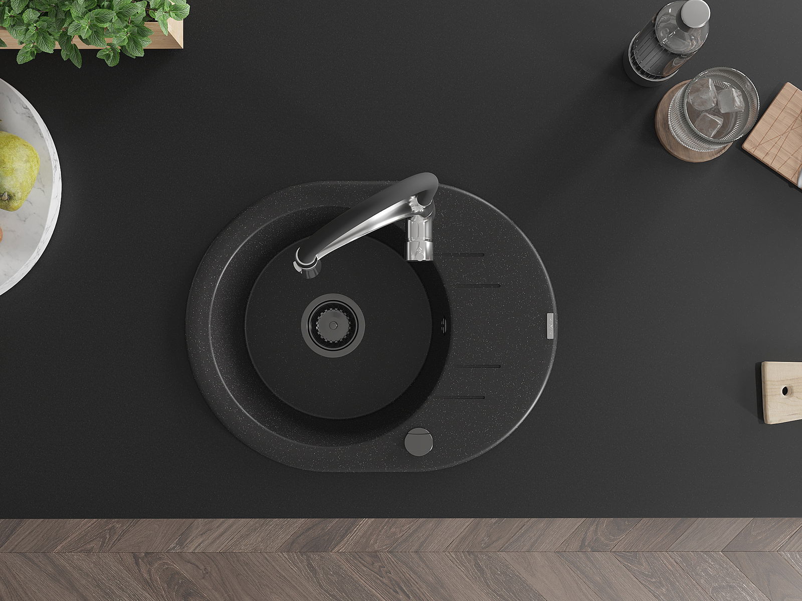 A mosogató magas minőségű gránitból készült. Elegáns, de mindenekelőtt praktikus kiegészítője minden konyhának, függetlenül annak stílusától. A gránit magas minősége és tartóssága hosszú távú használatot biztosít.
