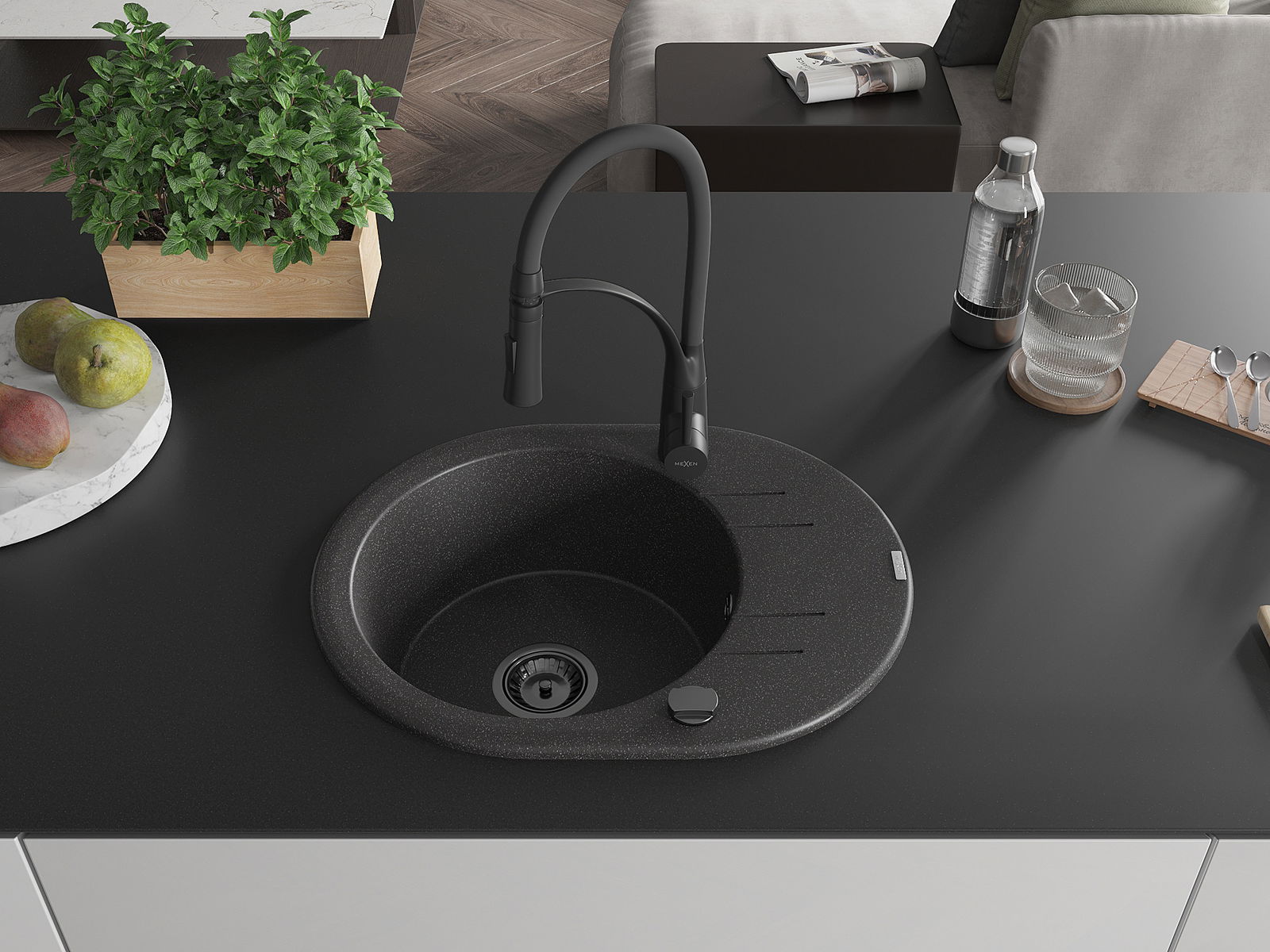 A mosogató kiváló minőségű gránitból készül. Ez egy elegáns és mindenekelőtt minden konyhához praktikus kiegészítés, stílusától függetlenül. A kiváló minőségű és a gránit tartósság biztosítja a sok éves használatát.