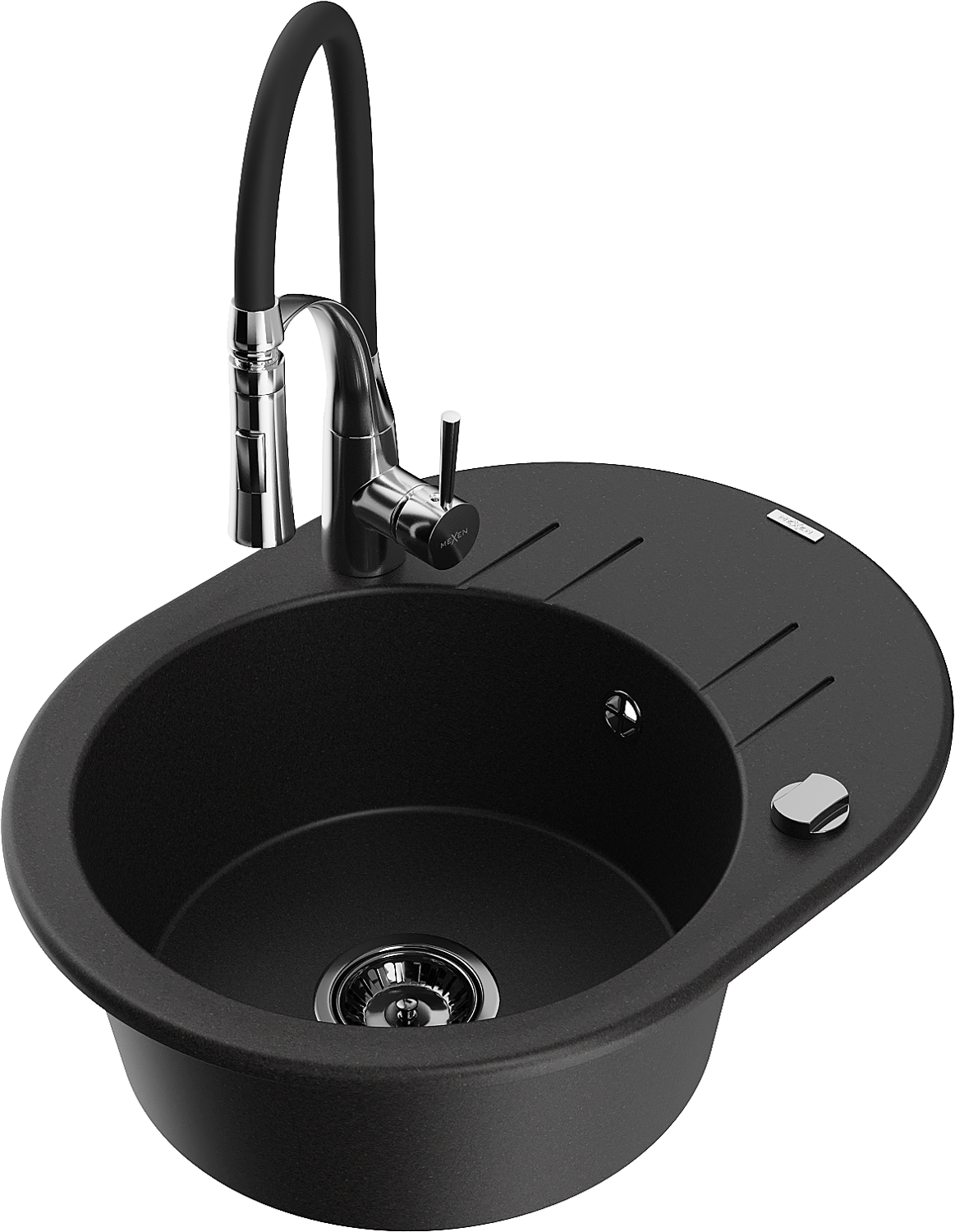 Mexen Kevin 1-medencés gránit mosogatócsepegtetővel és Aster konyhai csapteleppel, fekete - 6517-77-73450-07-B