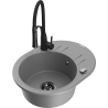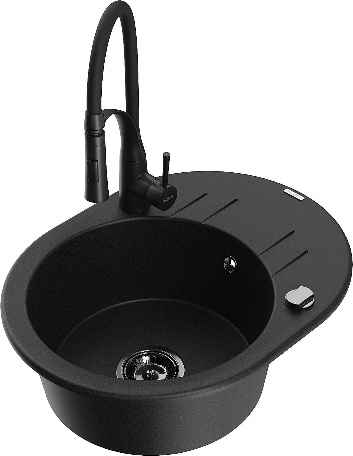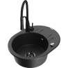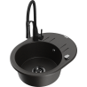 Mexen Kevin gránit mosogató, 1-medencés, csepegtetővel és Aster konyhai csapteleppel, fekete - 6517-77-73450-70-B