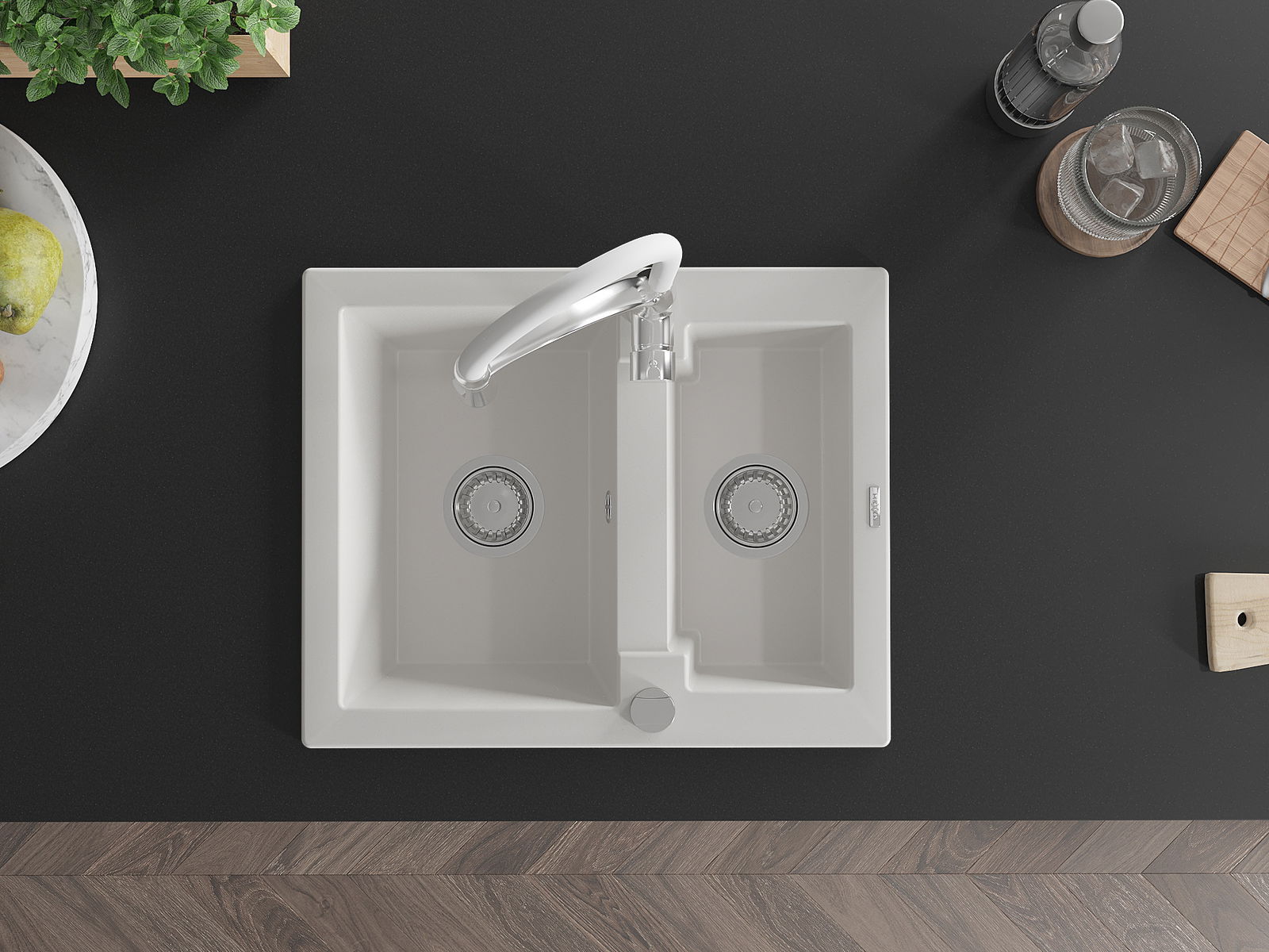 Mexen Carlos gránit mosogató 1,5-medencés konyhai csappal Aster, fehér - 6518-20-73450-02