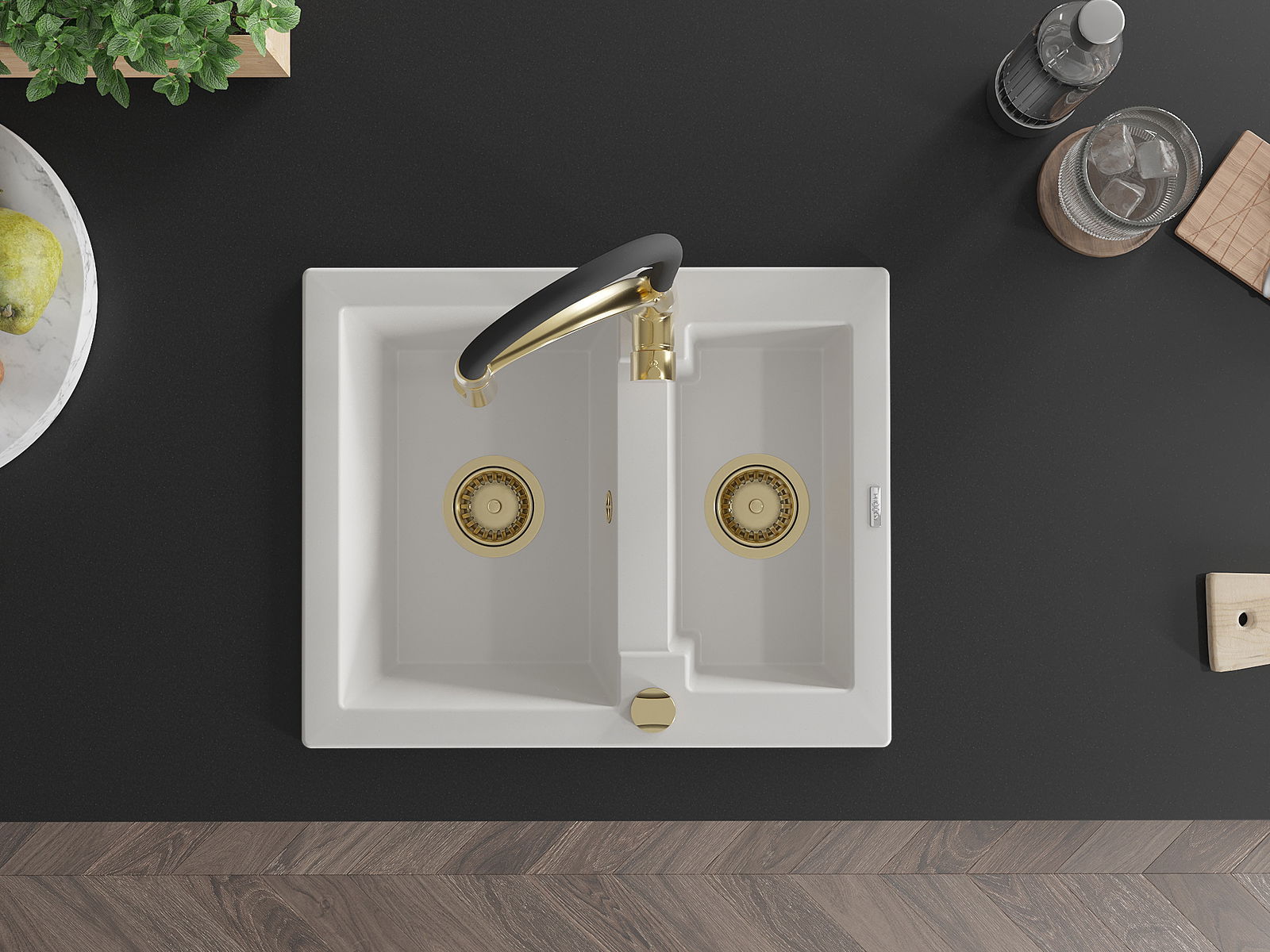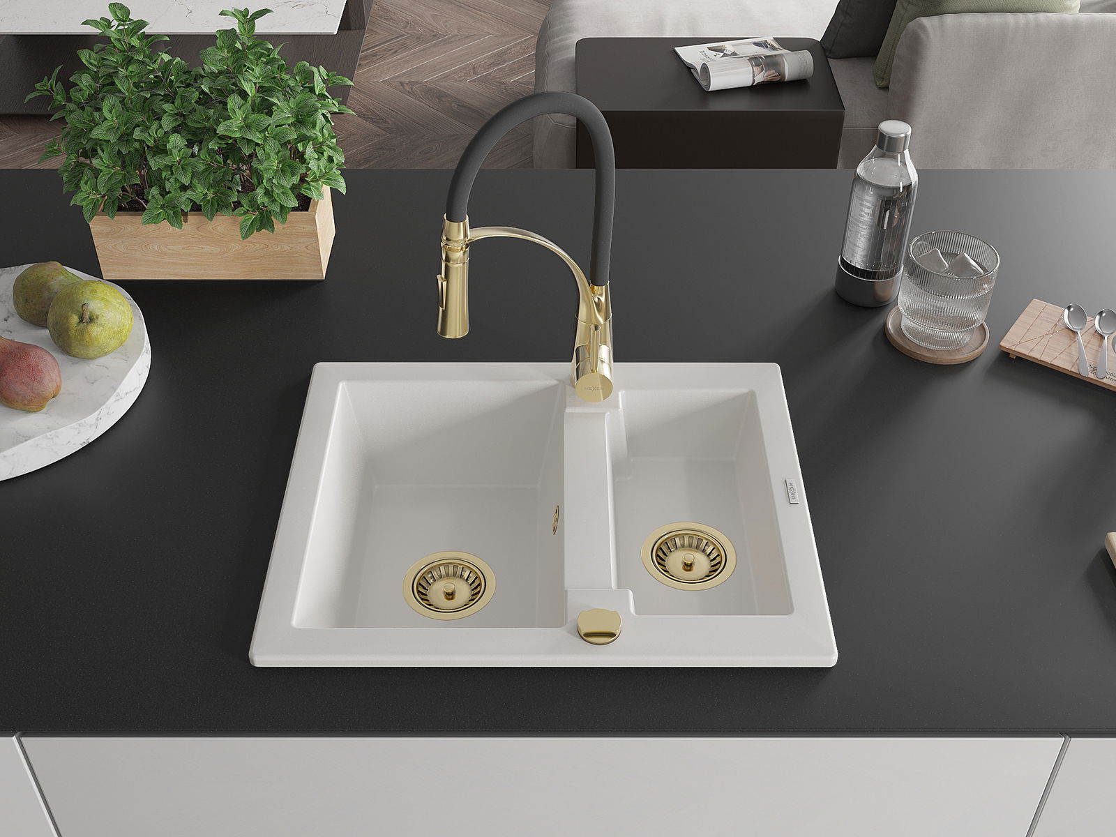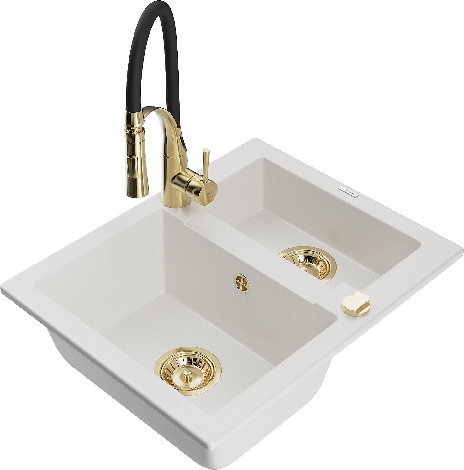 Mexen Carlos 1,5-medencés gránit mosogató Aster konyhai csapteleppel, fehér - 6518-20-73450-57-G