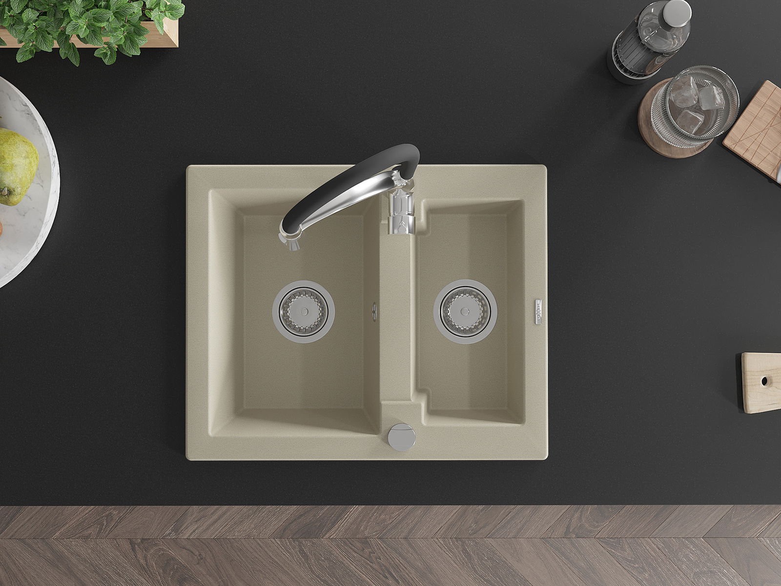 A mosogató magas minőségű gránitból készült. Elegáns, de mindenekelőtt praktikus kiegészítője minden konyhának, függetlenül annak stílusától. A gránit magas minősége és tartóssága hosszú távú használatot biztosít.