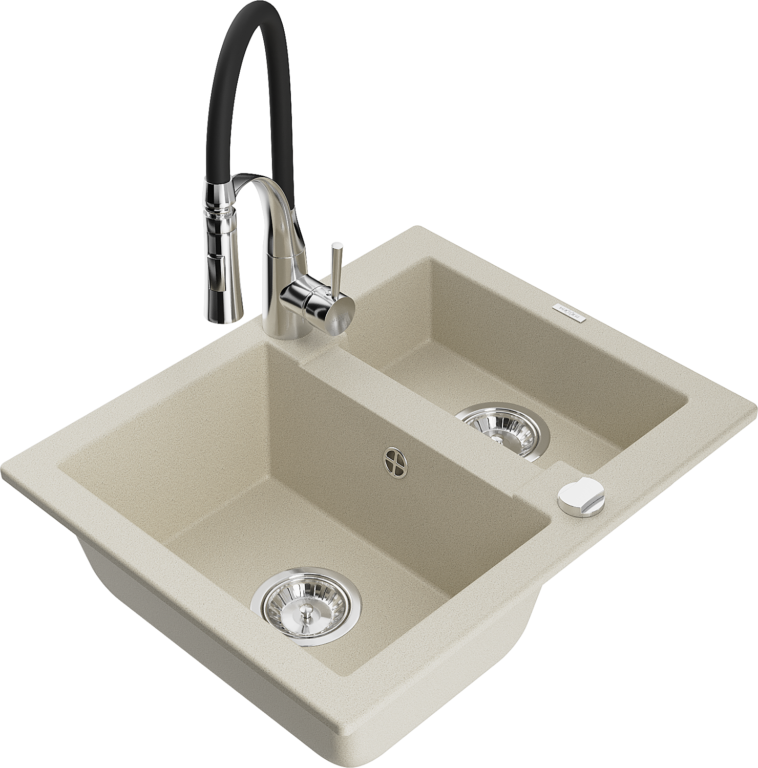 Mexen Carlos 1,5 medencés gránit mosogató Aster konyhai csapteleppel, bézs - 6518-69-73450-07