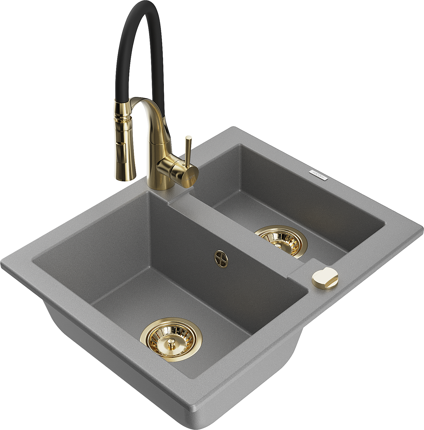 Mexen Carlos 1,5-medencés gránit mosogató Aster konyhai csapteleppel, szürke - 6518-71-73450-57-G