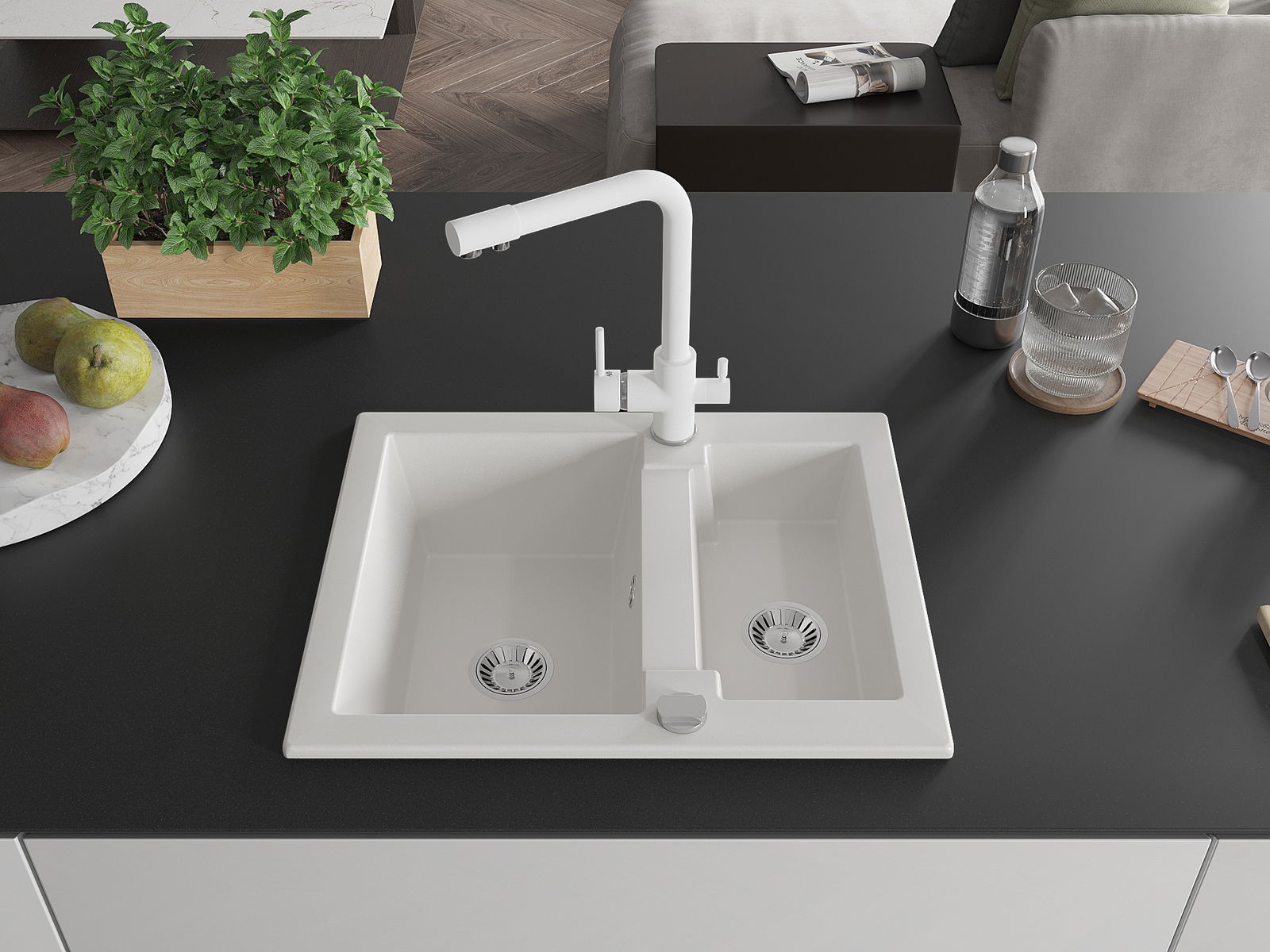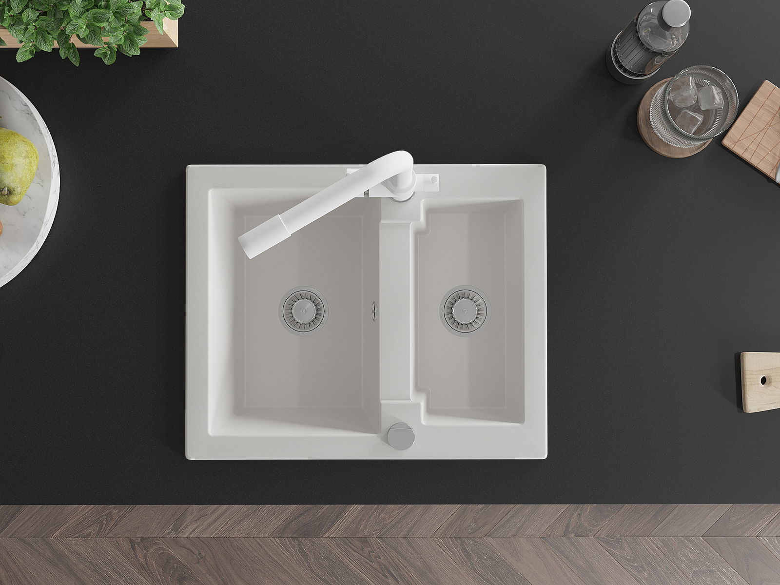 A mosogató felülete ellenáll a foltoknak és a elszíneződésnek, amelynek köszönhetően könnyű megtisztítani és hosszú ideig megtartja színét. Esztétikai és gyakorlatilag kiegészítve minden konyhát.