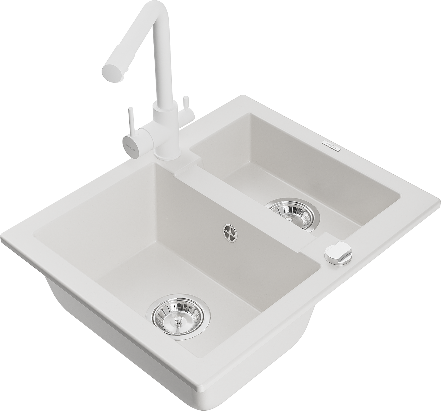 Mexen Carlos gránit mosogató 1,5 medencés csapteleppel Duero, fehér - 6518-20-671600-20