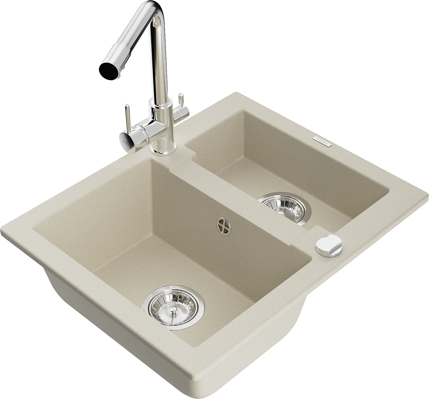 Mexen Carlos gránit mosogató 1,5-medencés Duero konyhai csappal, bézs - 6518-69-671600-00
