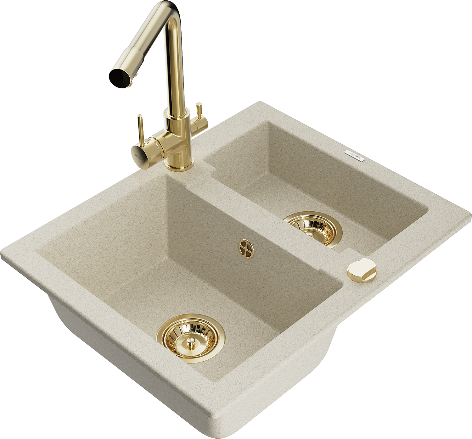 Mexen Carlos 1,5-medencés gránit mosogató Duero konyhai csapteleppel, bézs - 6518-69-671600-50