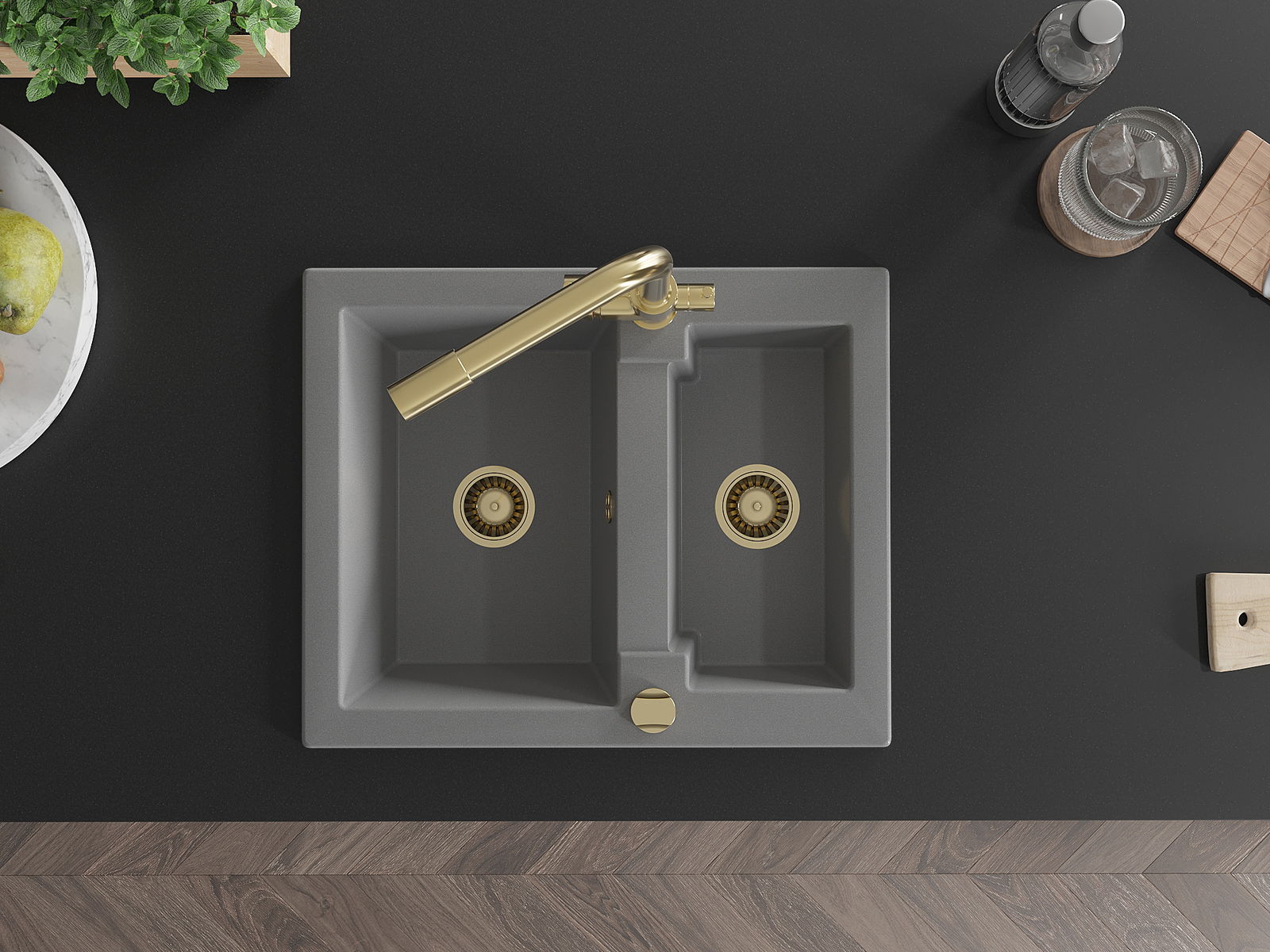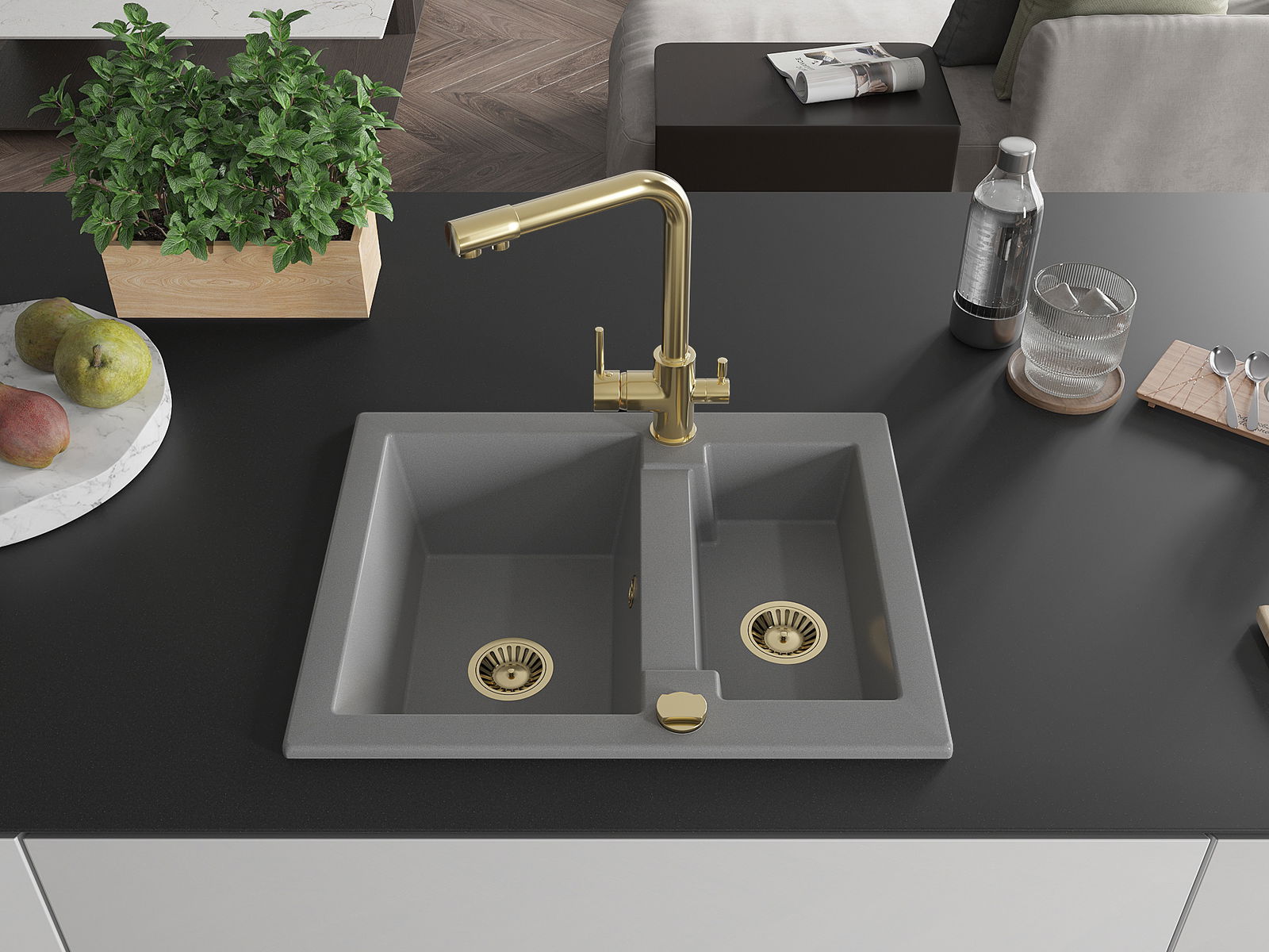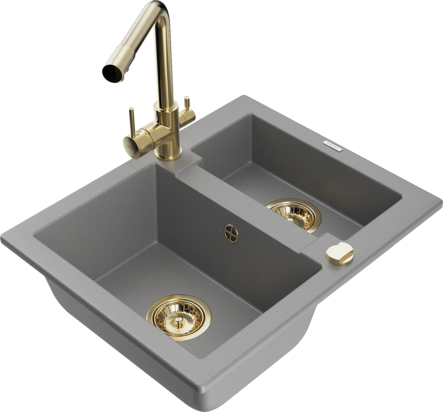 Mexen Carlos gránit mosogató 1,5 rekeszes Duero konyhai csappal, szürke - 6518-71-671600-50