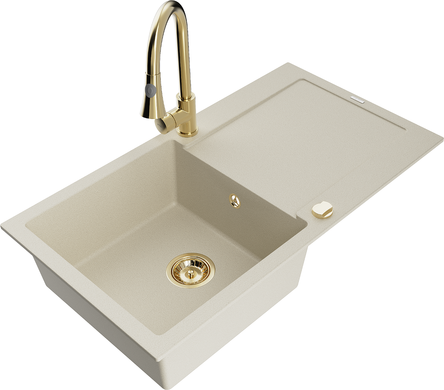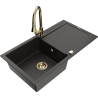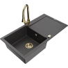 Mexen Leo gránit mosogató 1-medencés csepegtetővel és Elia konyhai csapteleppel, bézs - 6501-69-670101-50