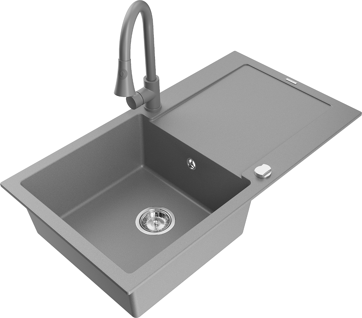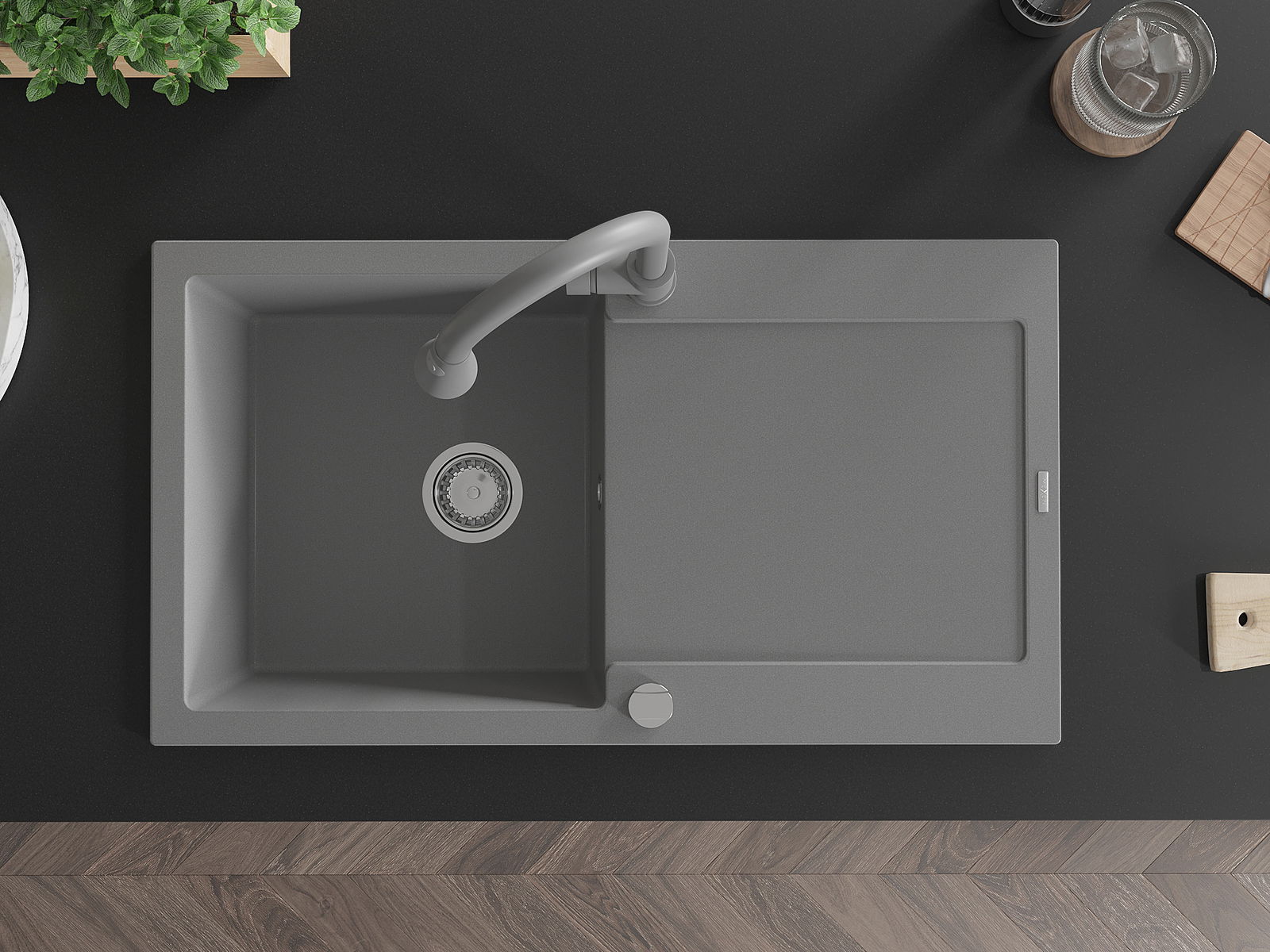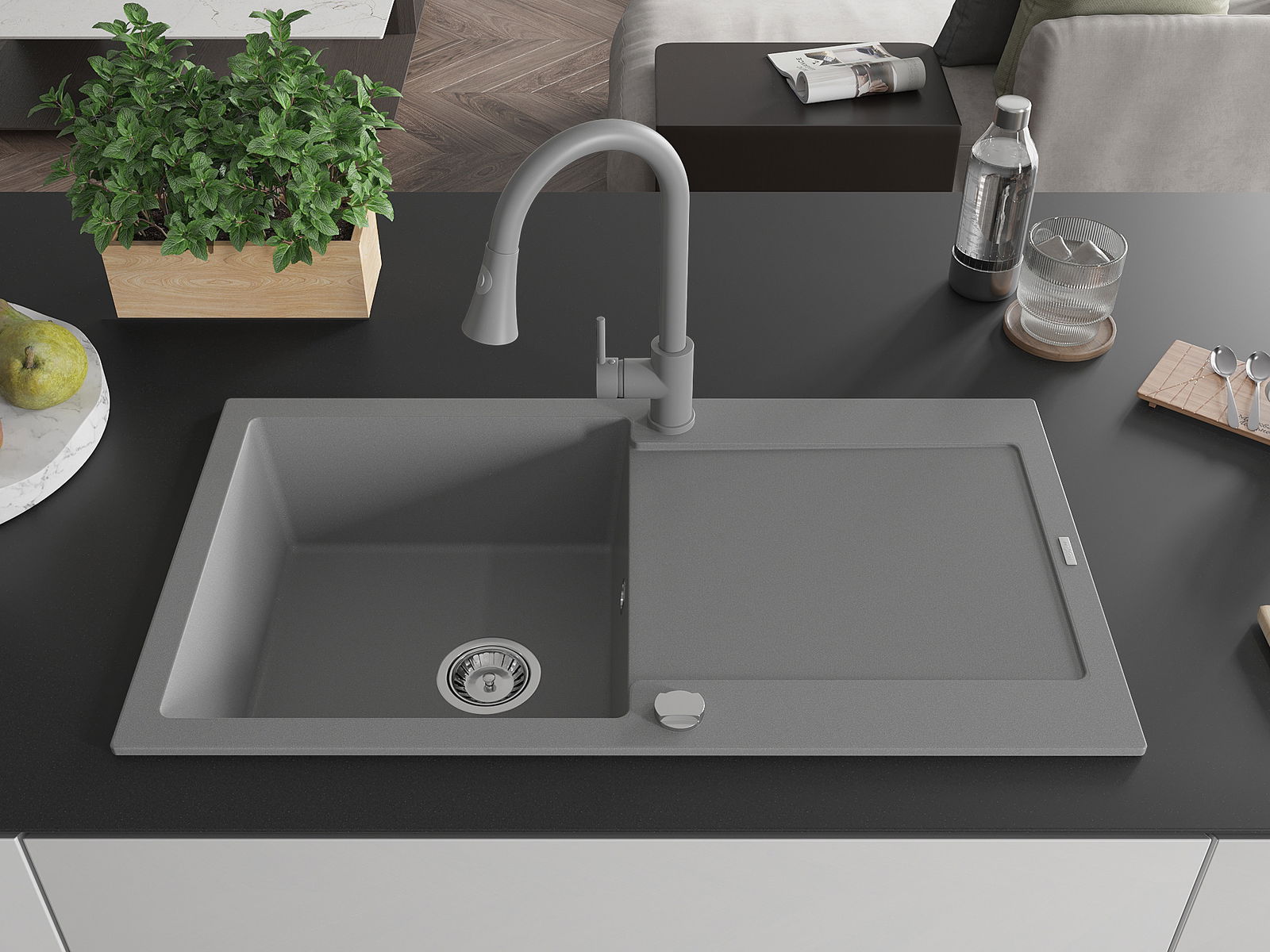 Mexen Leo egymedencés gránit mosogató csepegtetővel és Elia konyhai csappal, szürke - 6501-71-670101-71