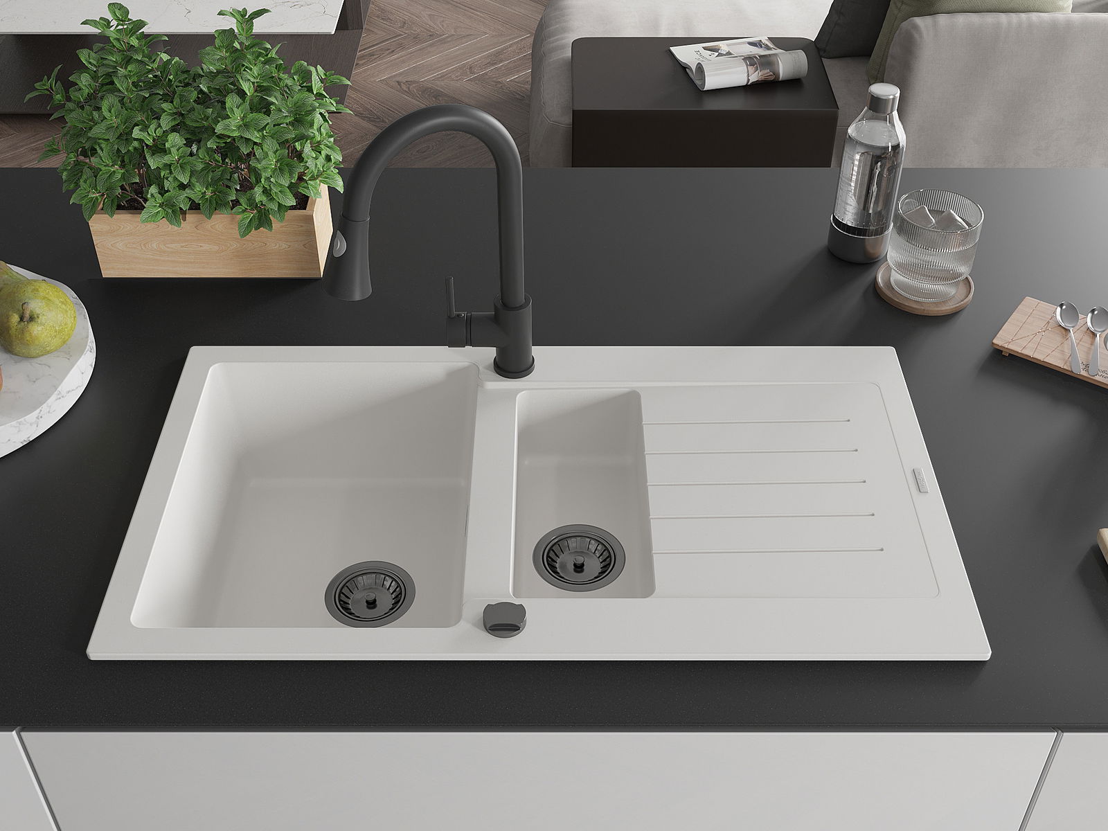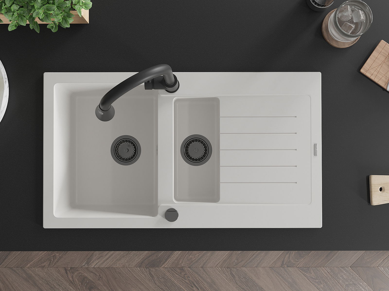 A mosogató felülete ellenáll a foltoknak és a elszíneződésnek, amelynek köszönhetően könnyű megtisztítani és hosszú ideig megtartja színét. Esztétikai és gyakorlatilag kiegészítve minden konyhát.