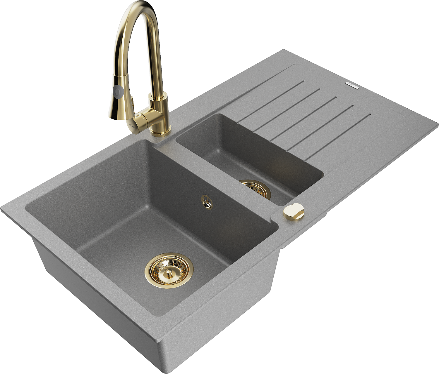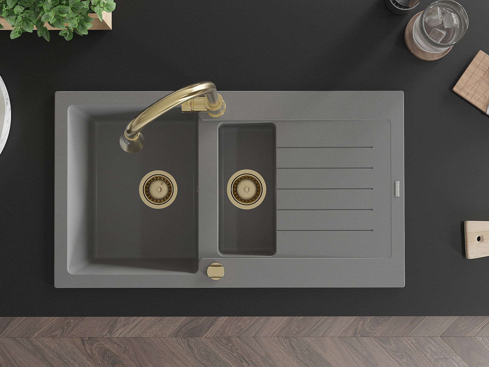 Mexen Matias 1,5 medencés gránit mosogató csepegtetővel és Elia konyhai csapteleppel, szürke - 6502-71-670101-50