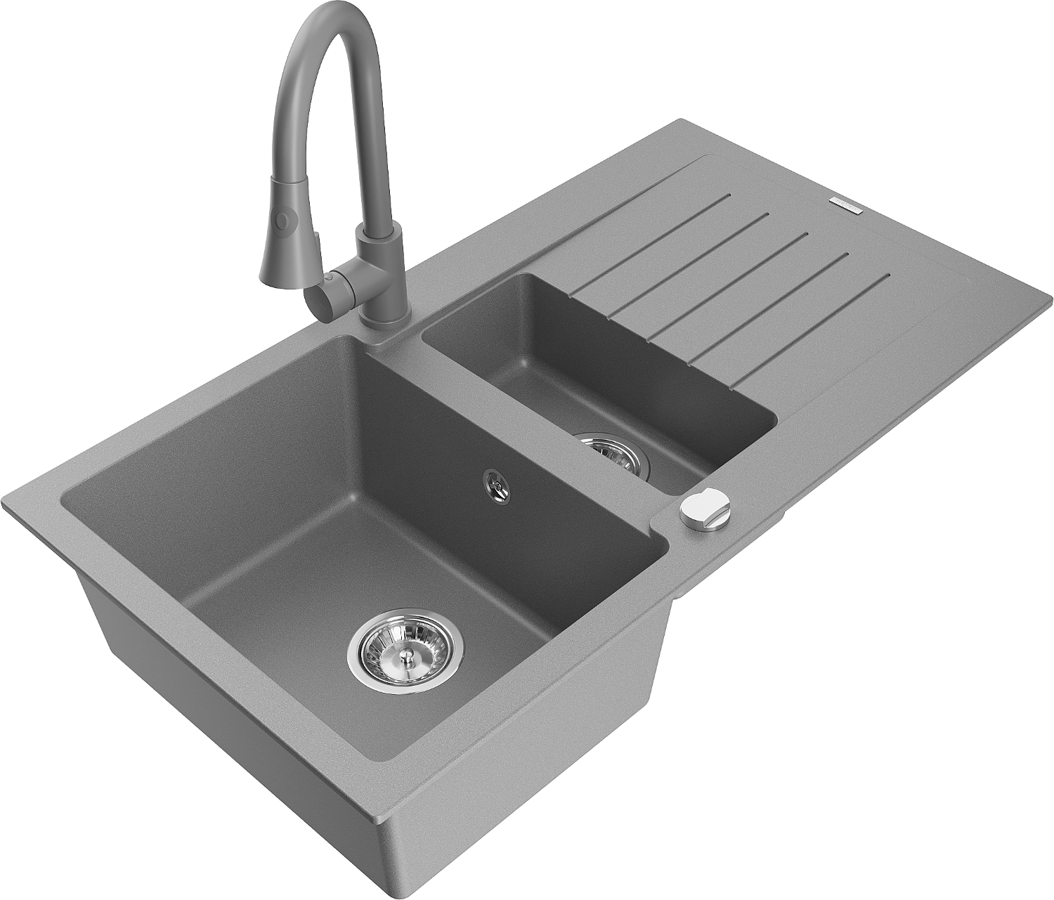 Mexen Matias gránit mosogatótálca 1,5 kamrás csepegtetővel és Elia konyhai csapteleppel, szürke - 6502-71-670101-71