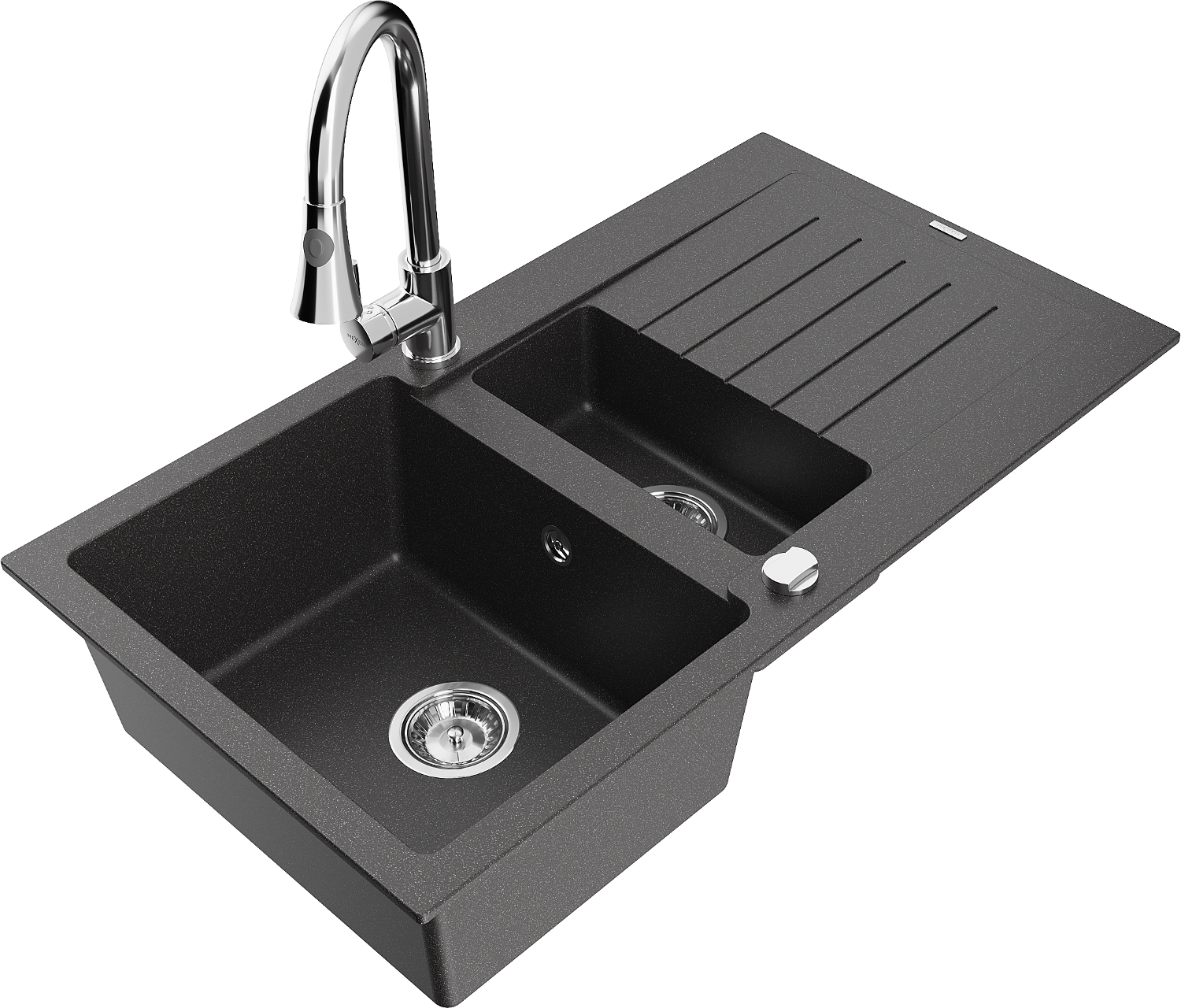 Mexen Matias 1,5 kamrás gránit mosogató csepegtetővel és Elia konyhai csapteleppel, fekete pöttyös - 6502-76-670101-00