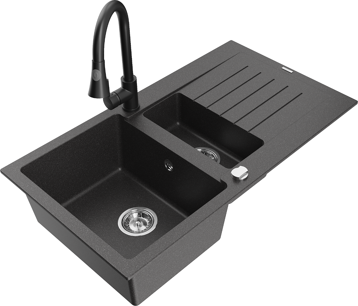 Mexen Matias 1,5 rekeszes gránit mosogató csepegtetővel és Elia konyhai csapteleppel, fekete pettyes - 6502-76-670101-70