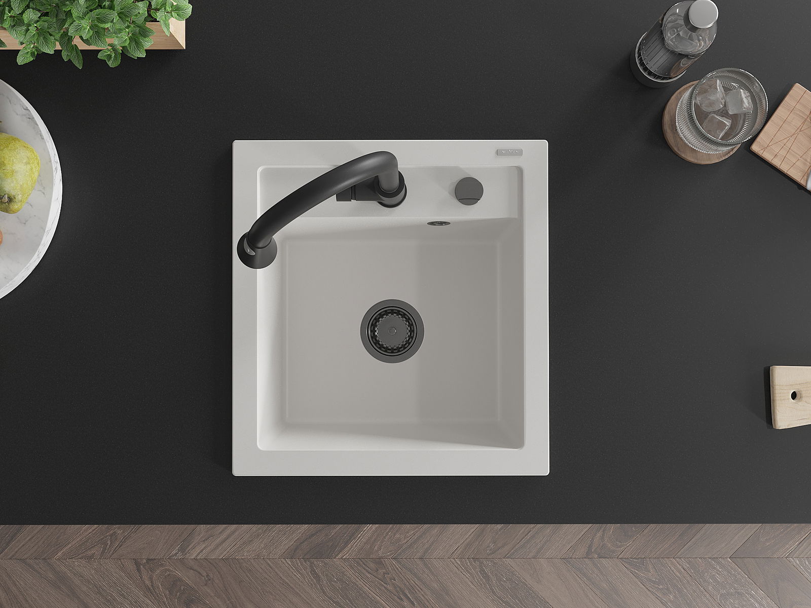A mosogató kiváló minőségű gránitból készül. Ez egy elegáns és mindenekelőtt minden konyhához praktikus kiegészítés, stílusától függetlenül. A kiváló minőségű és a gránit tartósság biztosítja a sok éves használatát.