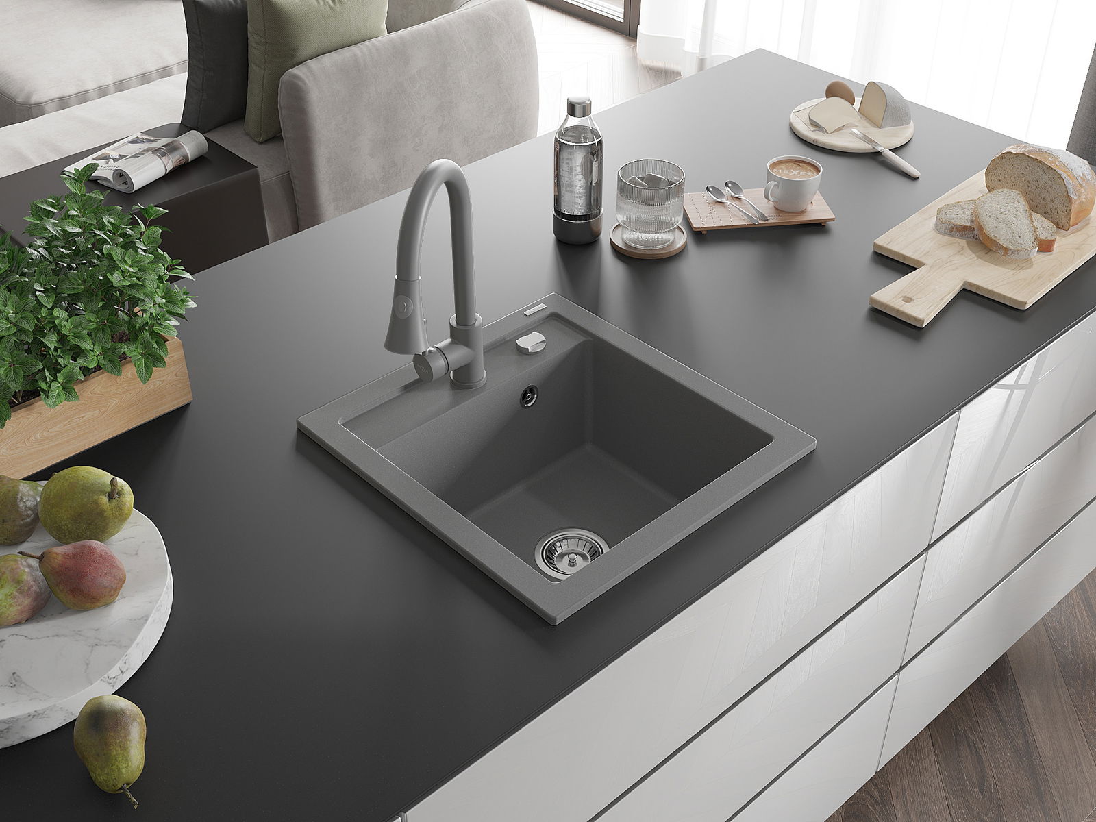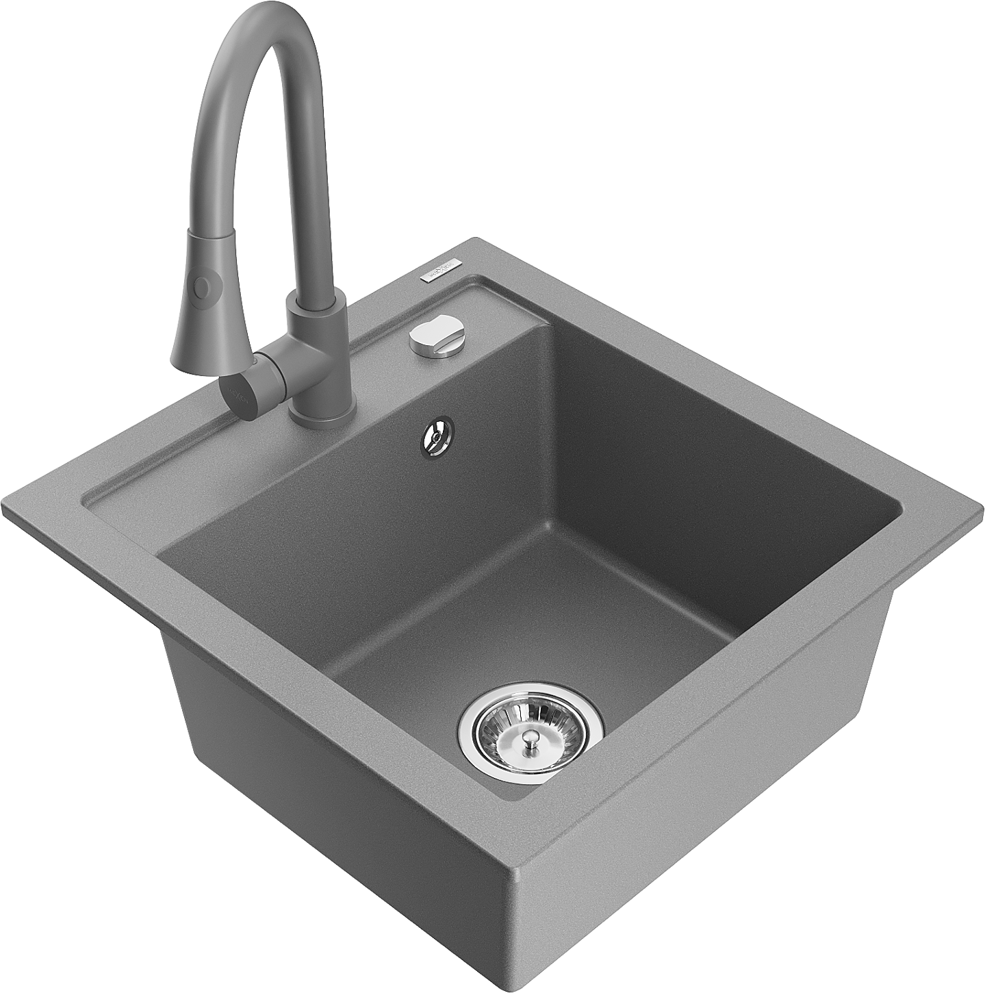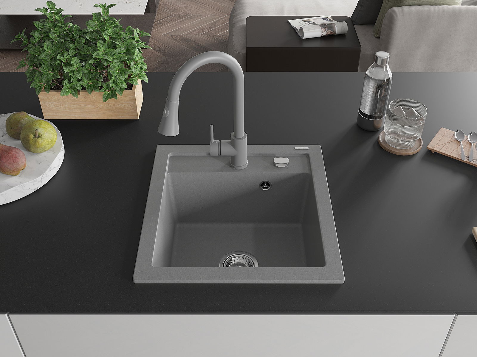 Mexen Vito egymedencés gránit mosogató Elia konyhai csapteleppel, szürke - 6503-71-670101-71