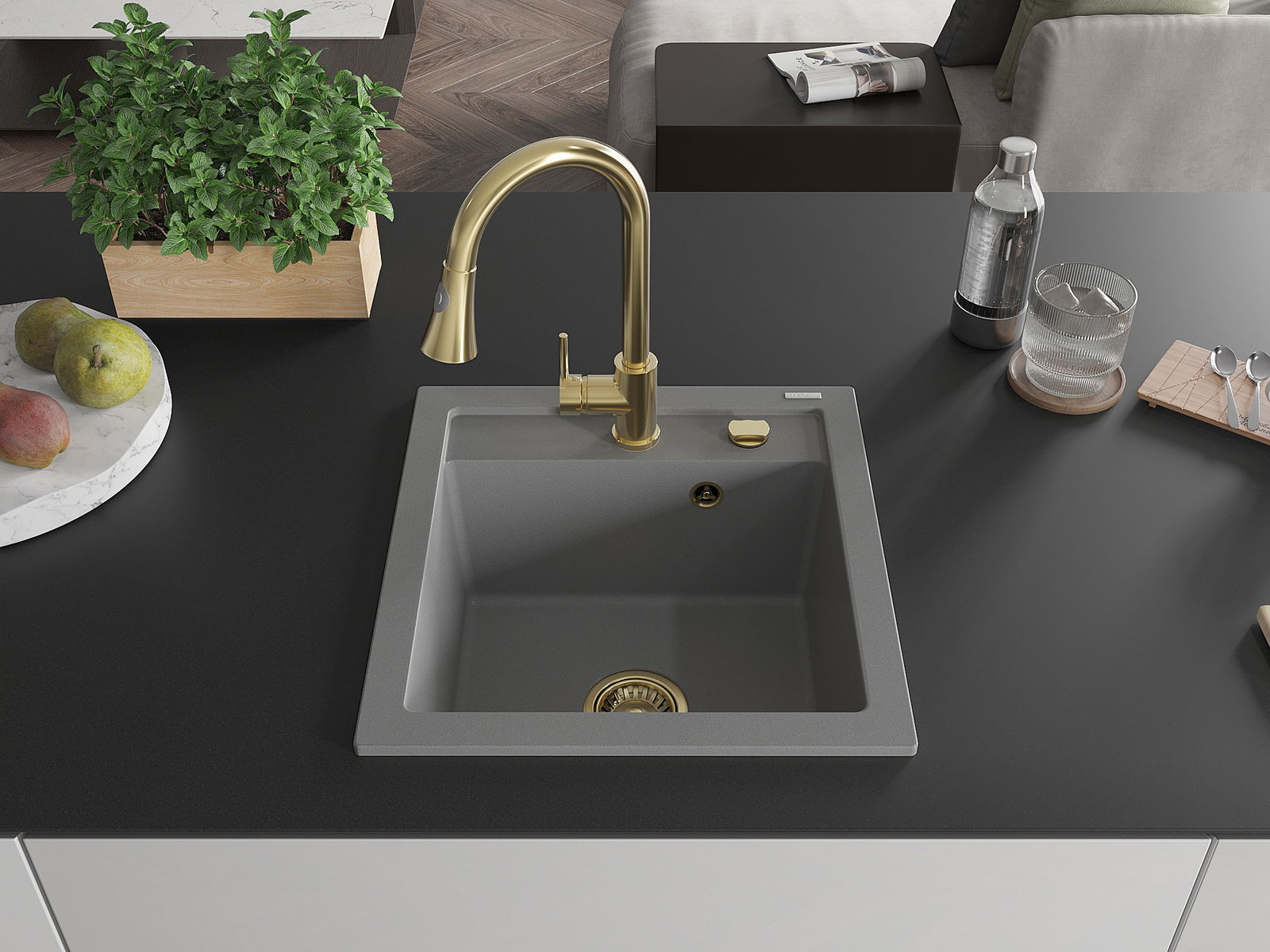 A mosogató kiváló minőségű gránitból készül. Ez egy elegáns és mindenekelőtt minden konyhához praktikus kiegészítés, stílusától függetlenül. A kiváló minőségű és a gránit tartósság biztosítja a sok éves használatát.
