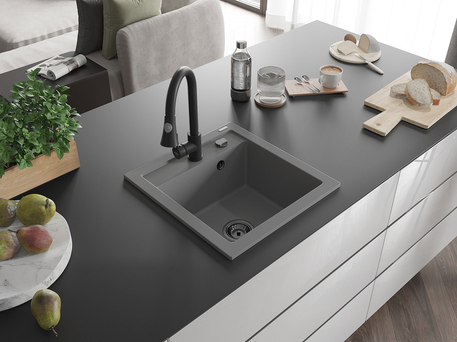 A mosogató kiváló minőségű gránitból készül. Ez egy elegáns és mindenekelőtt minden konyhához praktikus kiegészítés, stílusától függetlenül. A kiváló minőségű és a gránit tartósság biztosítja a sok éves használatát.