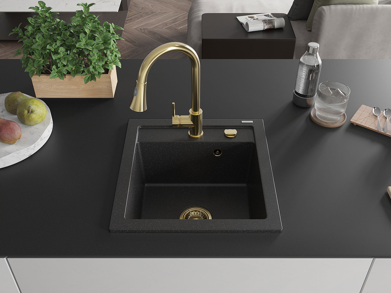 Mexen Vito 1 medence gránit mosogató Elia konyhai csapteleppel, fekete/ezüst metál - 6503-73-670101-50