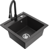 Mexen Vito egymedencés gránit mosogató Elia konyhai csapteleppel, fekete/ezüst metál - 6503-73-670101-70