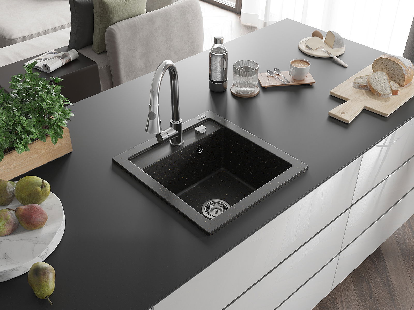A mosogató kiváló minőségű gránitból készül. Ez egy elegáns és mindenekelőtt minden konyhához praktikus kiegészítés, stílusától függetlenül. A kiváló minőségű és a gránit tartósság biztosítja a sok éves használatát.