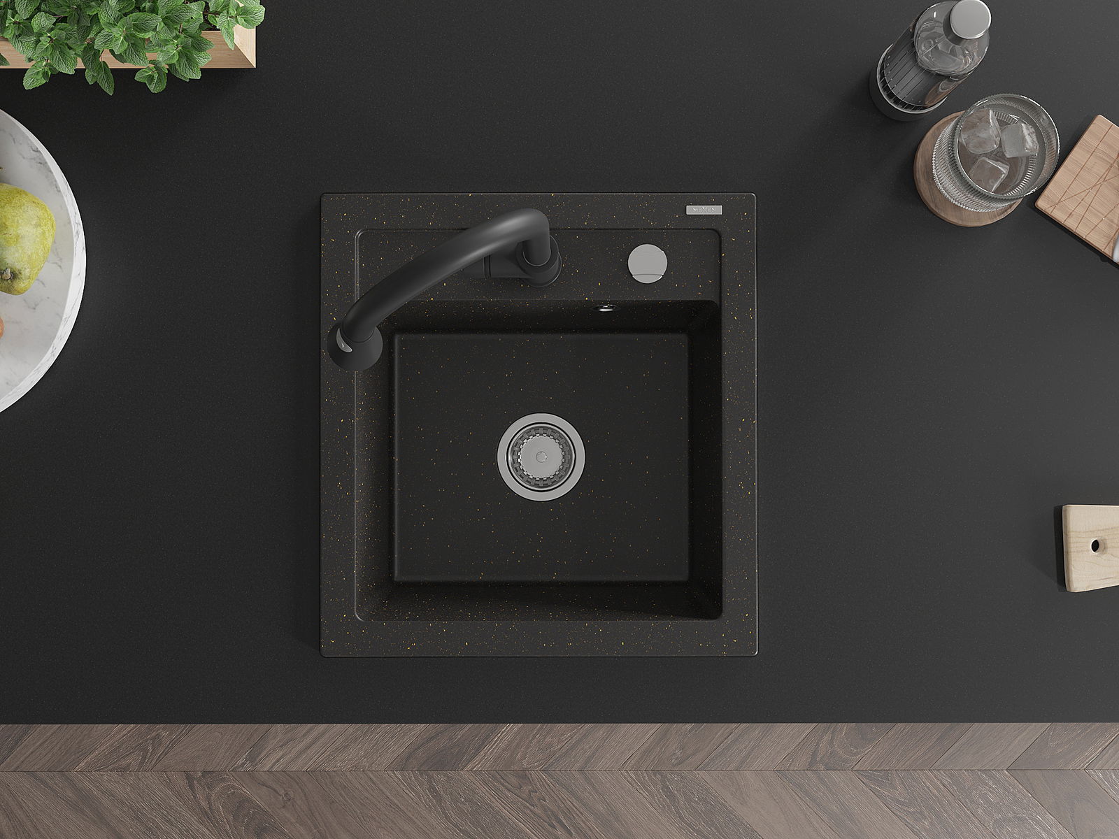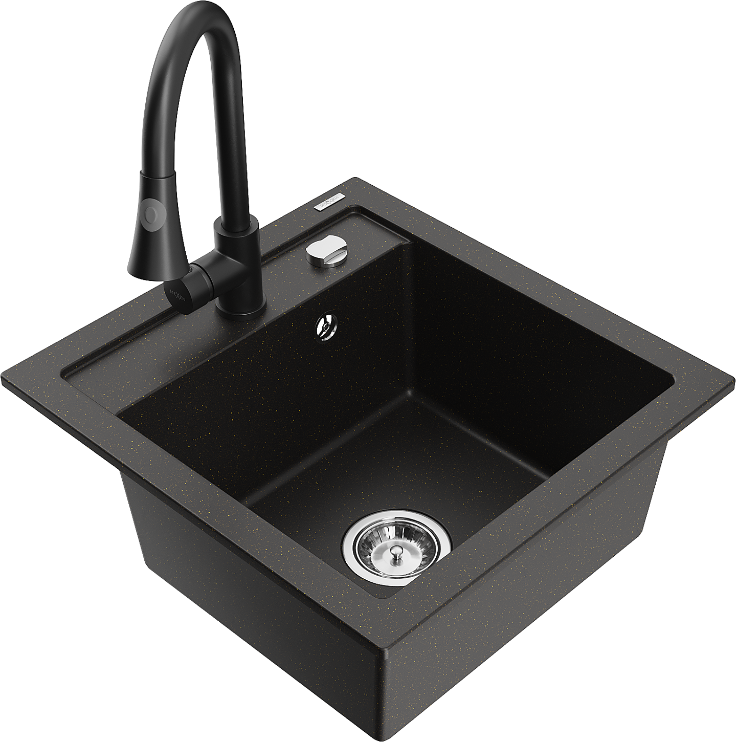 Mexen Vito 1 rekeszes gránit mosogató Elia konyhai csappal, fekete/arany metál - 6503-75-670101-70