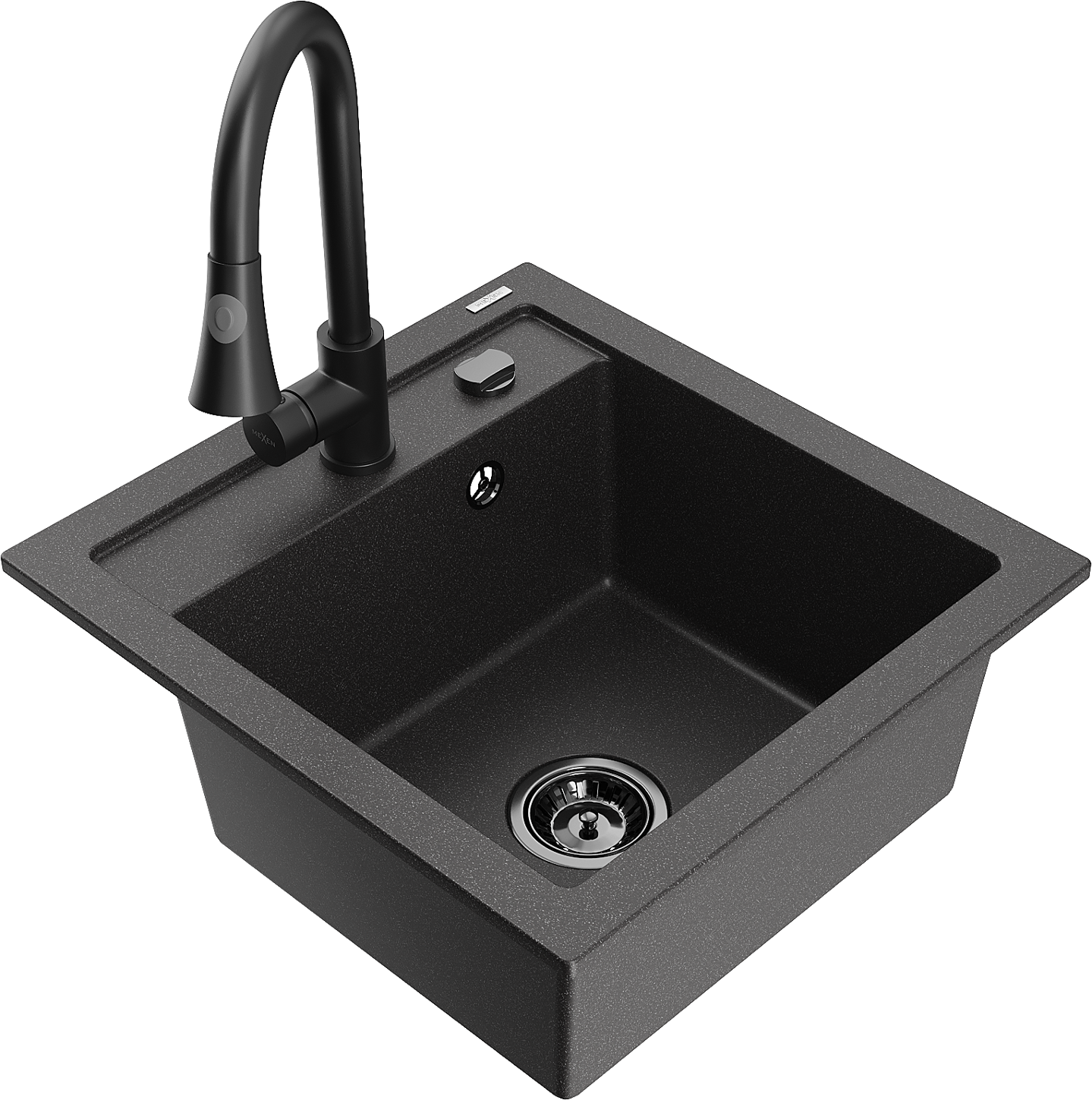 Mexen Vito egymedencés gránit mosogató Elia konyhai csappal, fekete pöttyözött - 6503-76-670101-70-B