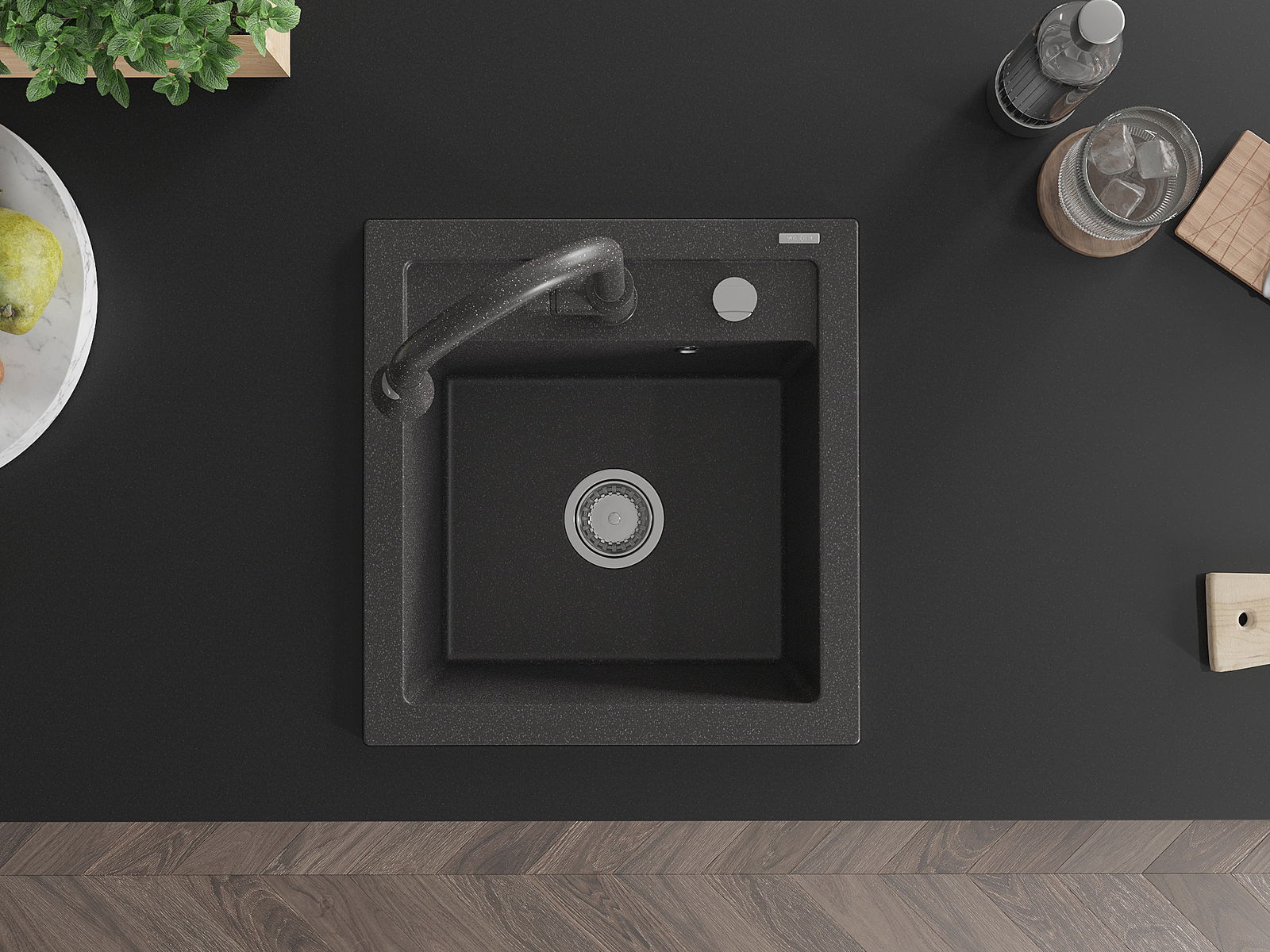 A mosogató kiváló minőségű gránitból készül. Ez egy elegáns és mindenekelőtt minden konyhához praktikus kiegészítés, stílusától függetlenül. A kiváló minőségű és a gránit tartósság biztosítja a sok éves használatát.