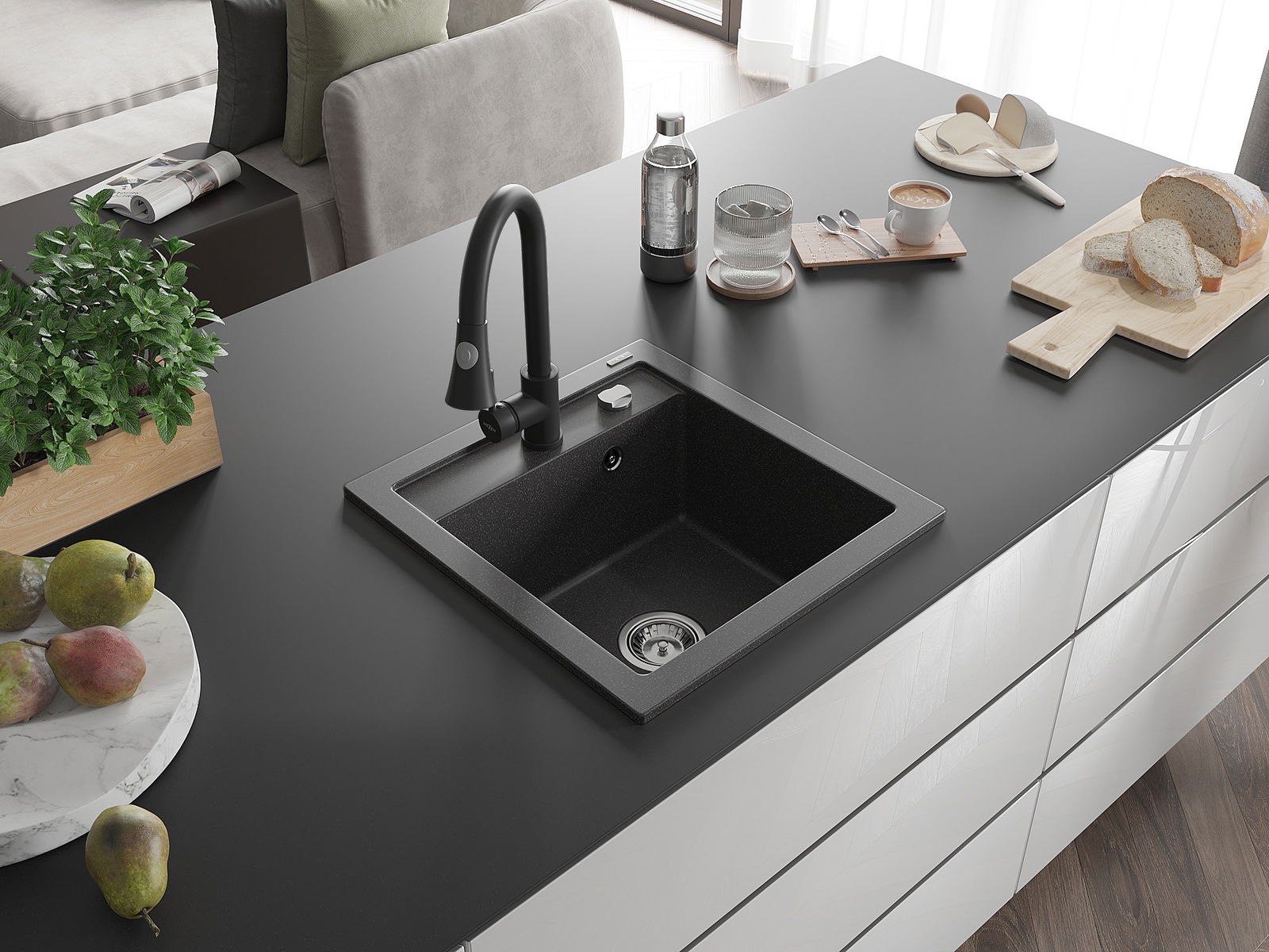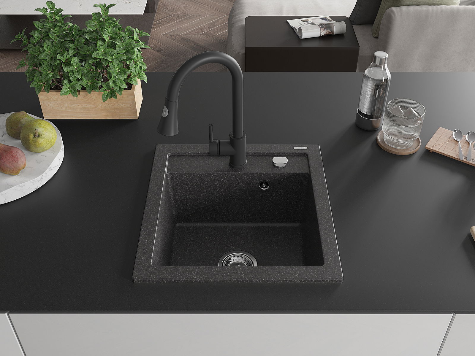 A mosogató kiváló minőségű gránitból készül. Ez egy elegáns és mindenekelőtt minden konyhához praktikus kiegészítés, stílusától függetlenül. A kiváló minőségű és a gránit tartósság biztosítja a sok éves használatát.
