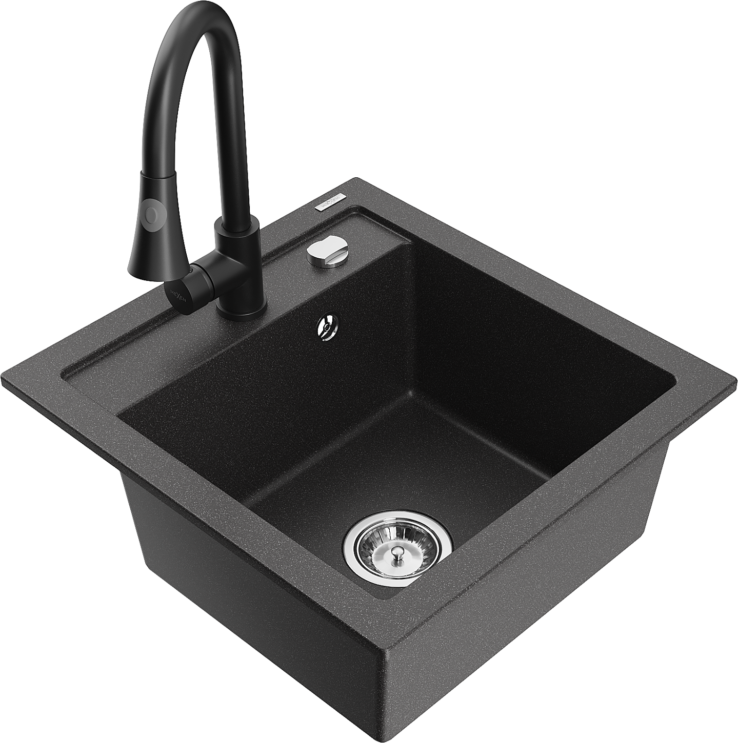 Mexen Vito egymedencés gránit mosogató Elia konyhai csapteleppel, fekete pöttyözött - 6503-76-670101-70