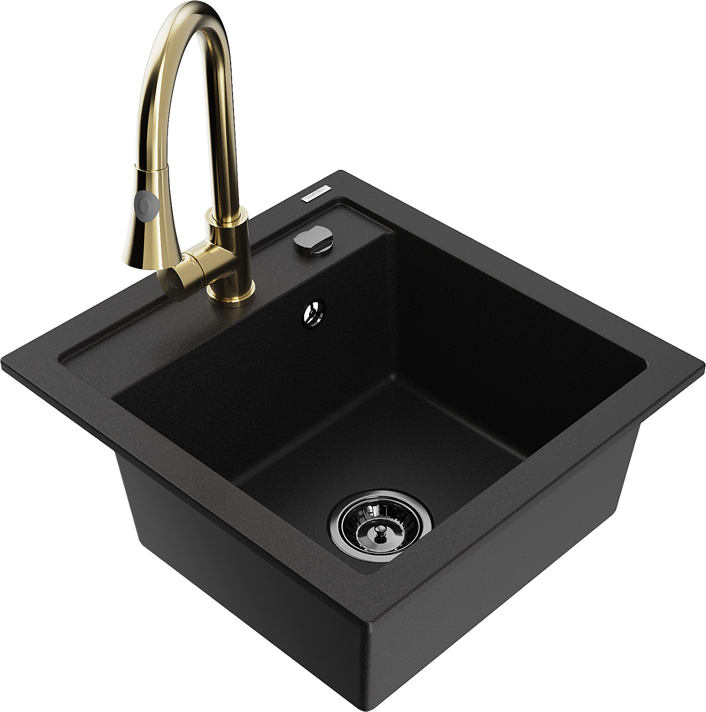 Mexen Vito egykamrás gránit mosogató Elia konyhai csappal, fekete - 6503-77-670101-50-B