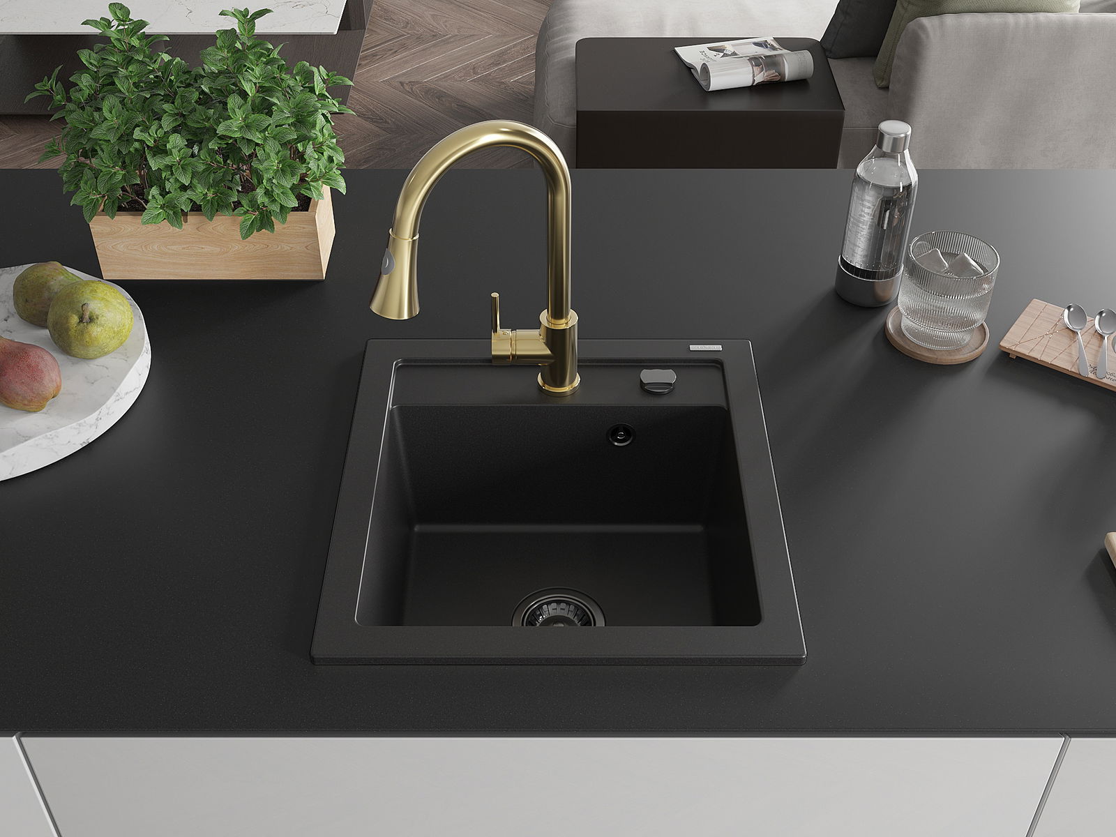 A mosogató kiváló minőségű gránitból készül. Ez egy elegáns és mindenekelőtt minden konyhához praktikus kiegészítés, stílusától függetlenül. A kiváló minőségű és a gránit tartósság biztosítja a sok éves használatát.
