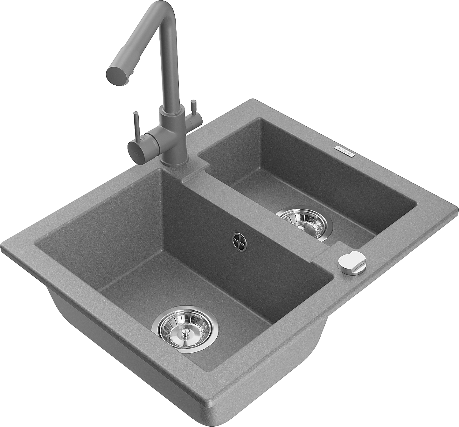 Mexen Carlos gránit mosogatótálca 1,5 rekeszes Duero konyhai csapteleppel, szürke - 6518-71-671600-71
