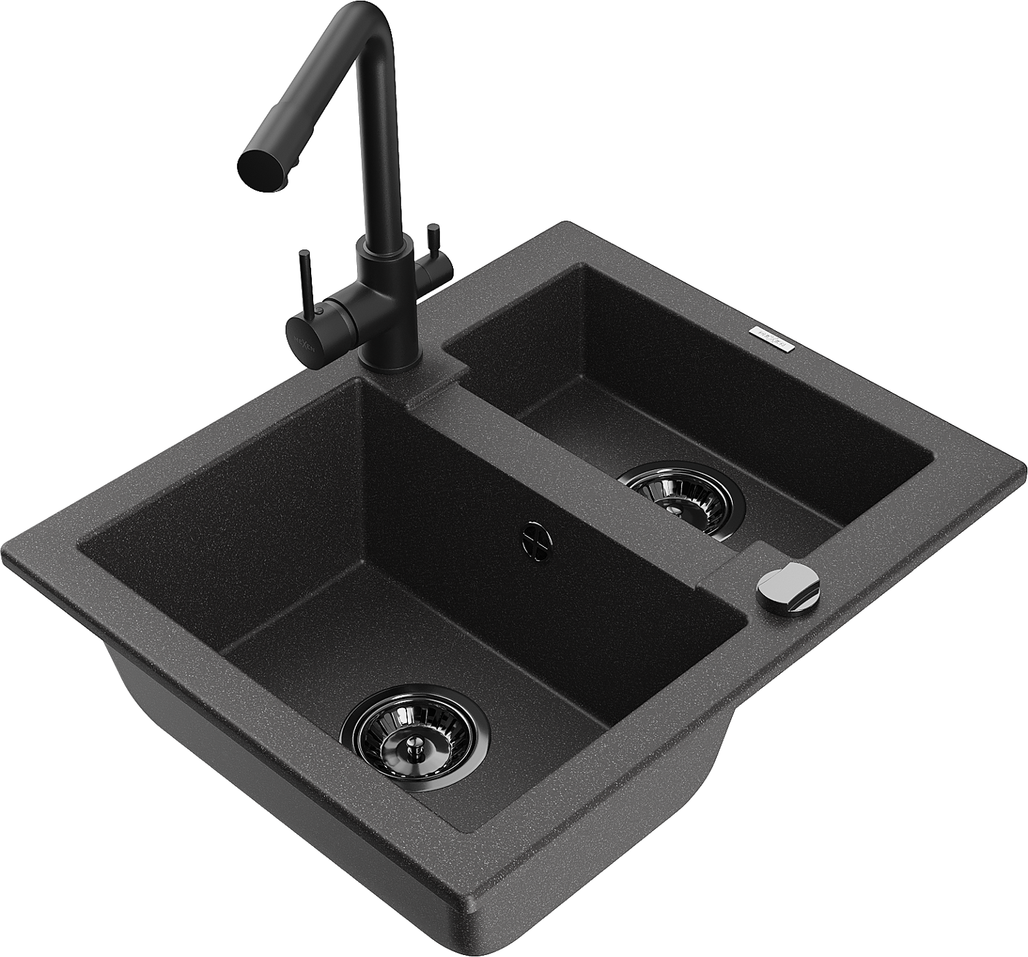 Mexen Carlos gránit mosogató, 1,5 medencés Duero konyhai csapteleppel, fekete pöttyös - 6518-76-671600-70-B