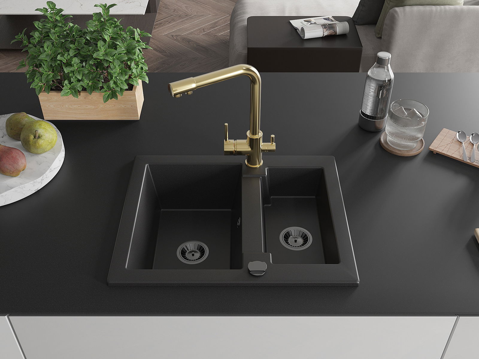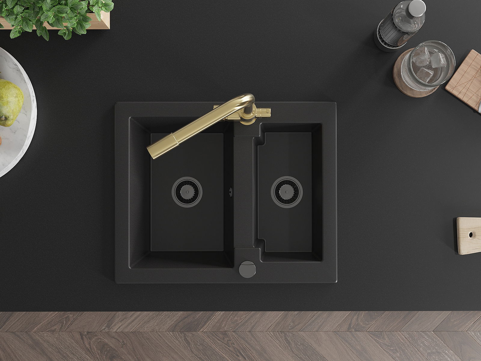 Mexen Carlos 1,5 rekeszes gránit mosogató Duero konyhai csappal, fekete - 6518-77-671600-50-B
