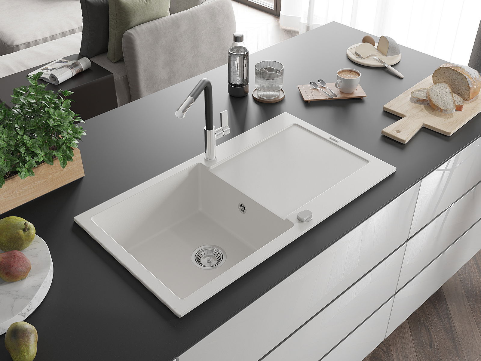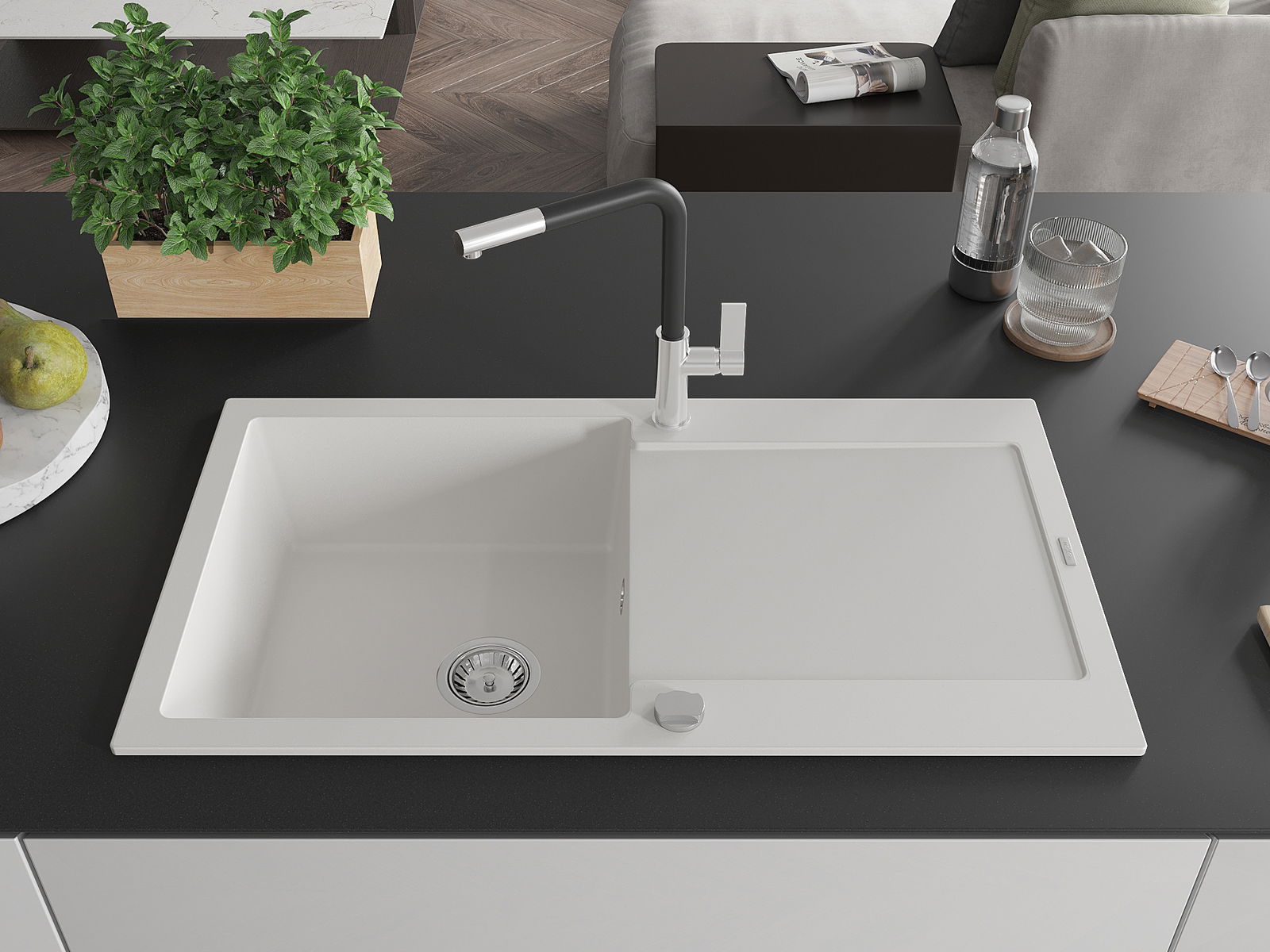 A mosogató felülete ellenáll a foltoknak és a elszíneződésnek, amelynek köszönhetően könnyű megtisztítani és hosszú ideig megtartja színét. Esztétikai és gyakorlatilag kiegészítve minden konyhát.