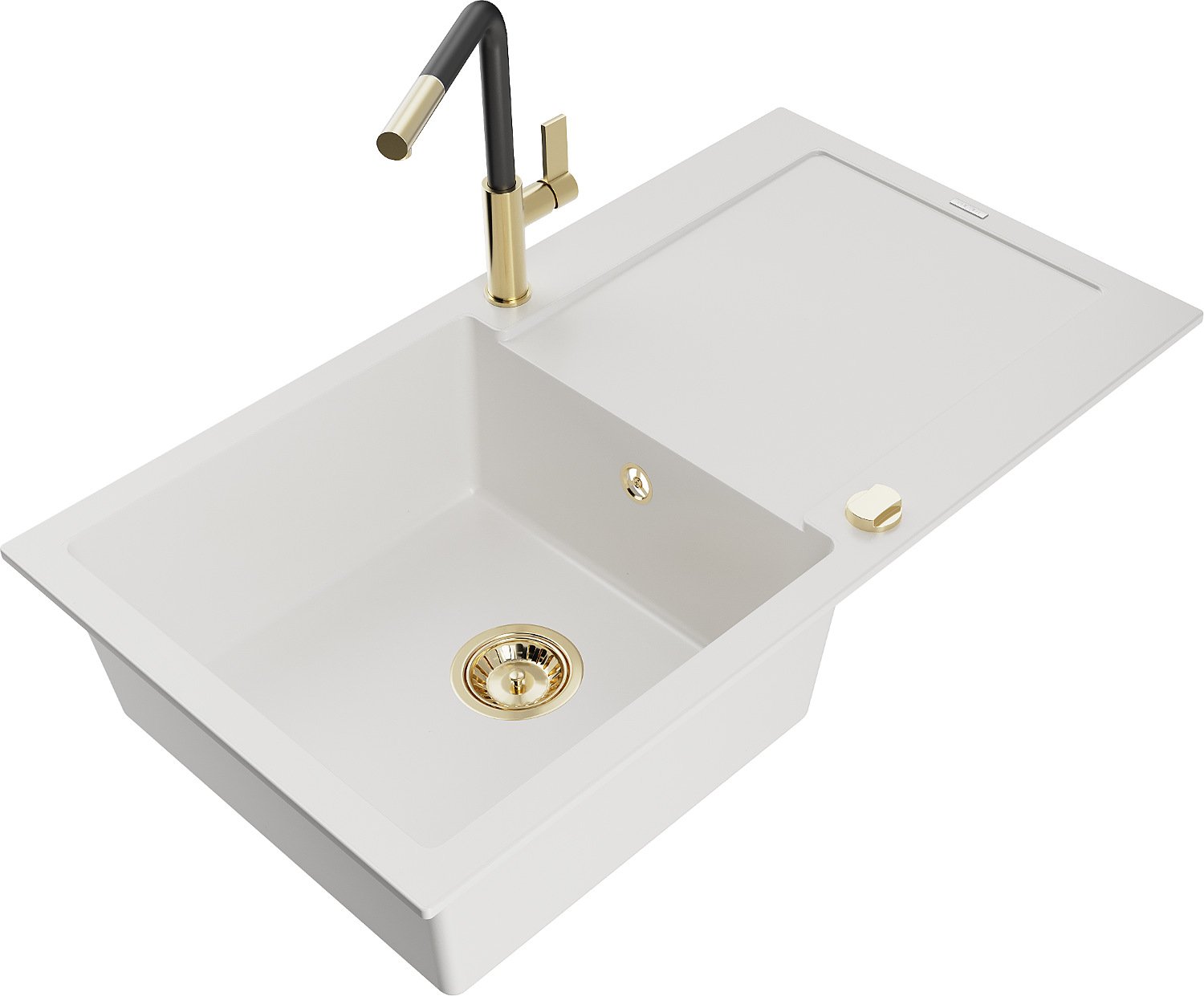 Mexen Leo egymedencés gránit mosogató csepegtetővel és Flora konyhai csapteleppel, fehér - 6501-20-670401-57-G