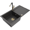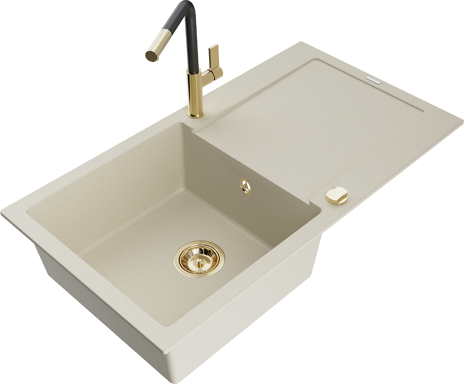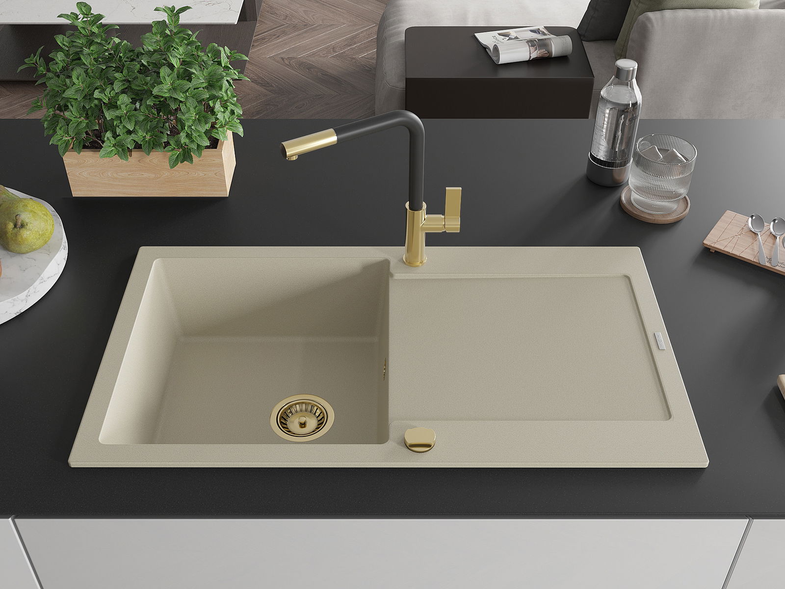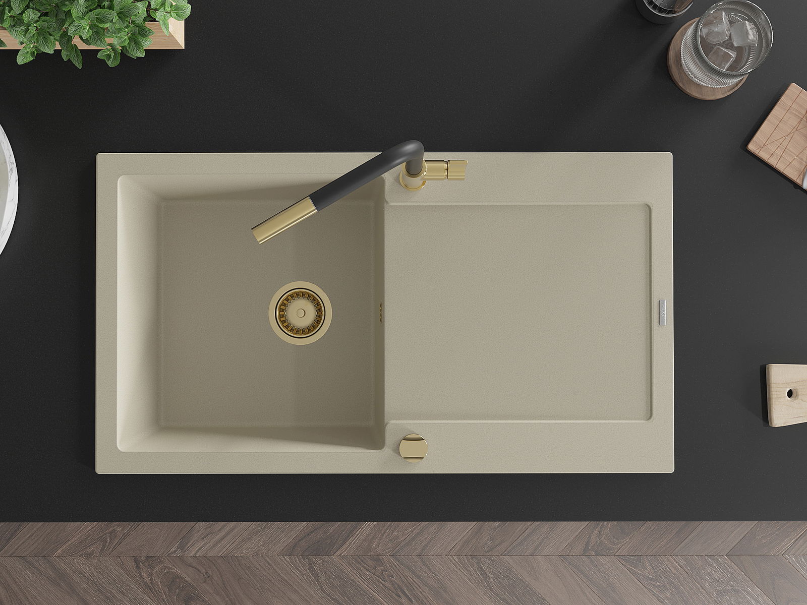 Mexen Leo egymedencés gránit mosogató csepptálcával és Flora konyhai csapteleppel, bézs - 6501-69-670401-57-G