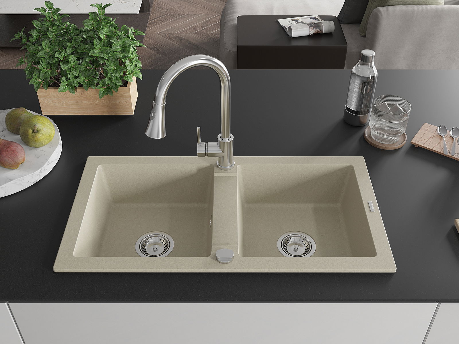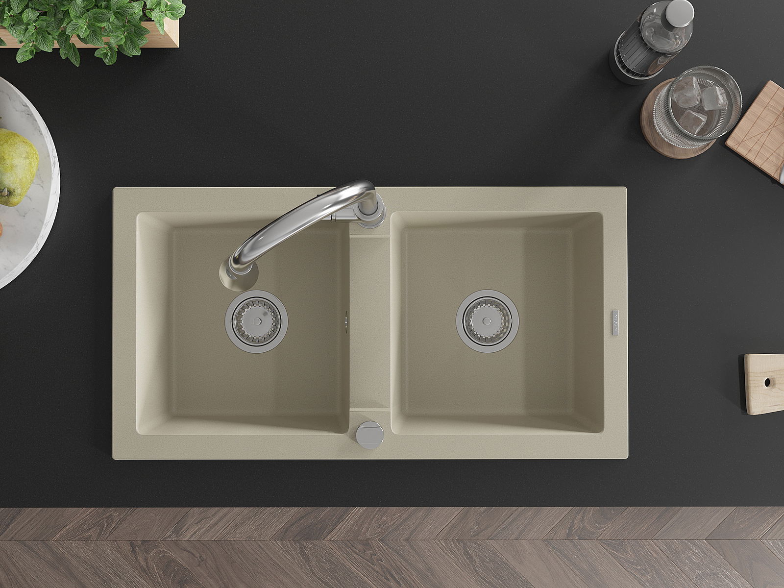 A mosogató felülete ellenáll a foltoknak és a elszíneződésnek, amelynek köszönhetően könnyű megtisztítani és hosszú ideig megtartja színét. Esztétikai és gyakorlatilag kiegészítve minden konyhát.