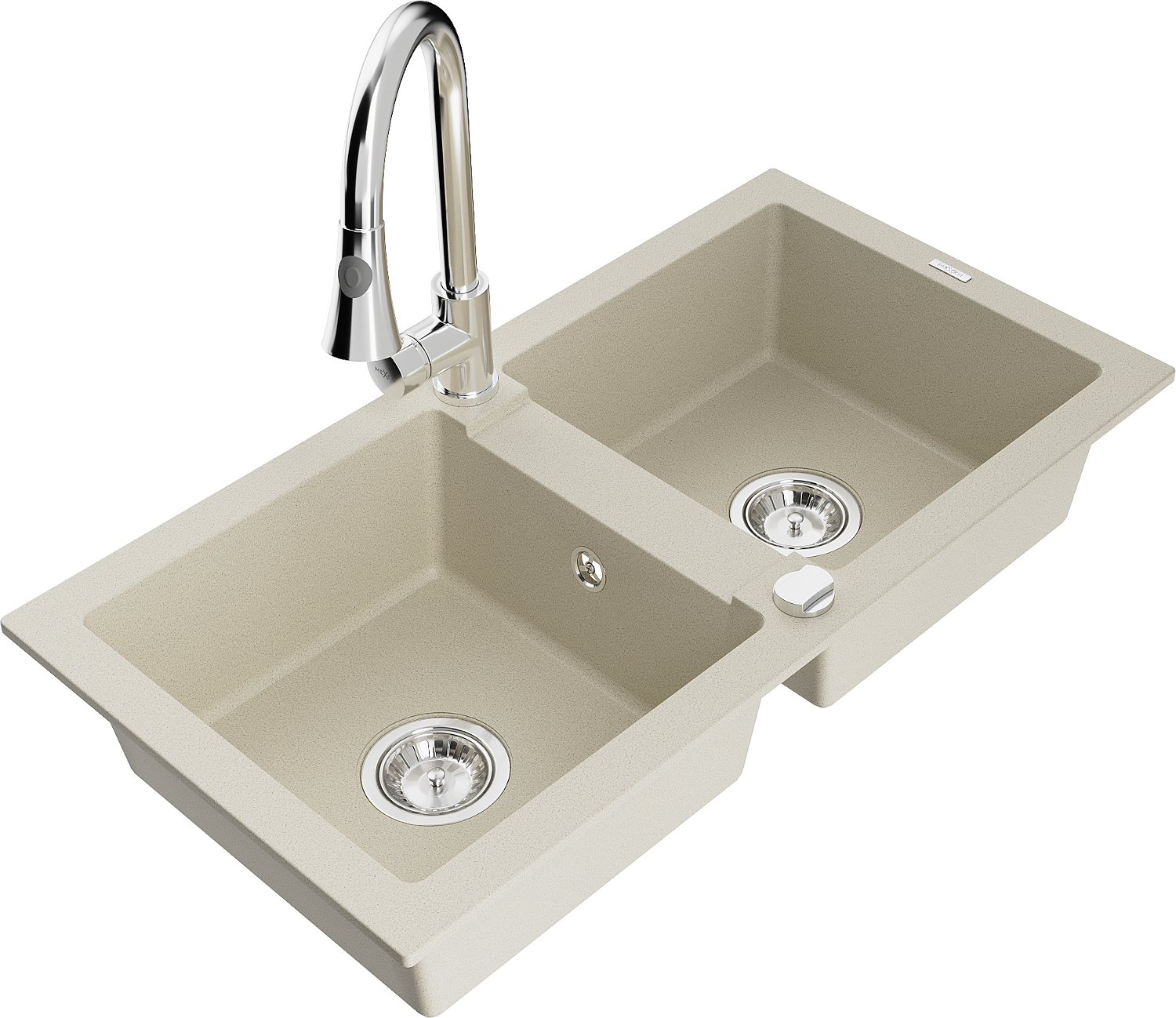 Mexen Mario gránit 2-medencés mosogató Elia konyhai csapteleppel, bézs - 6504-69-670101-00
