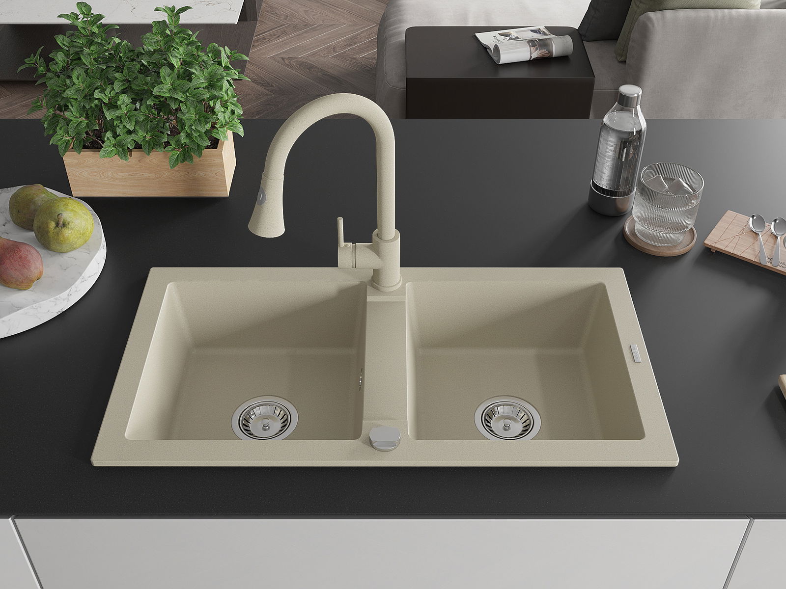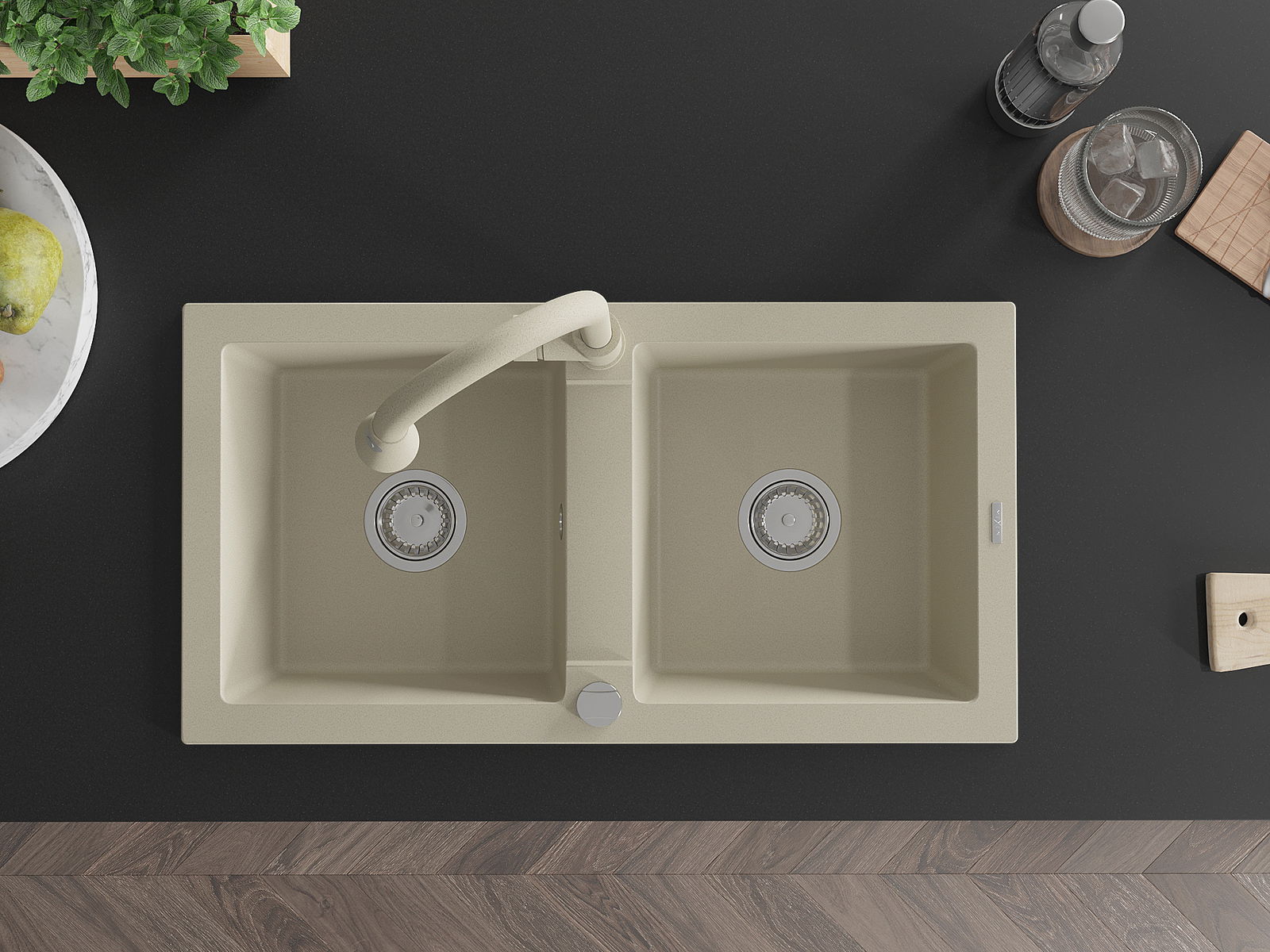 A mosogató magas minőségű gránitból készült. Elegáns, de mindenekelőtt praktikus kiegészítője minden konyhának, függetlenül annak stílusától. A gránit magas minősége és tartóssága hosszú távú használatot biztosít.