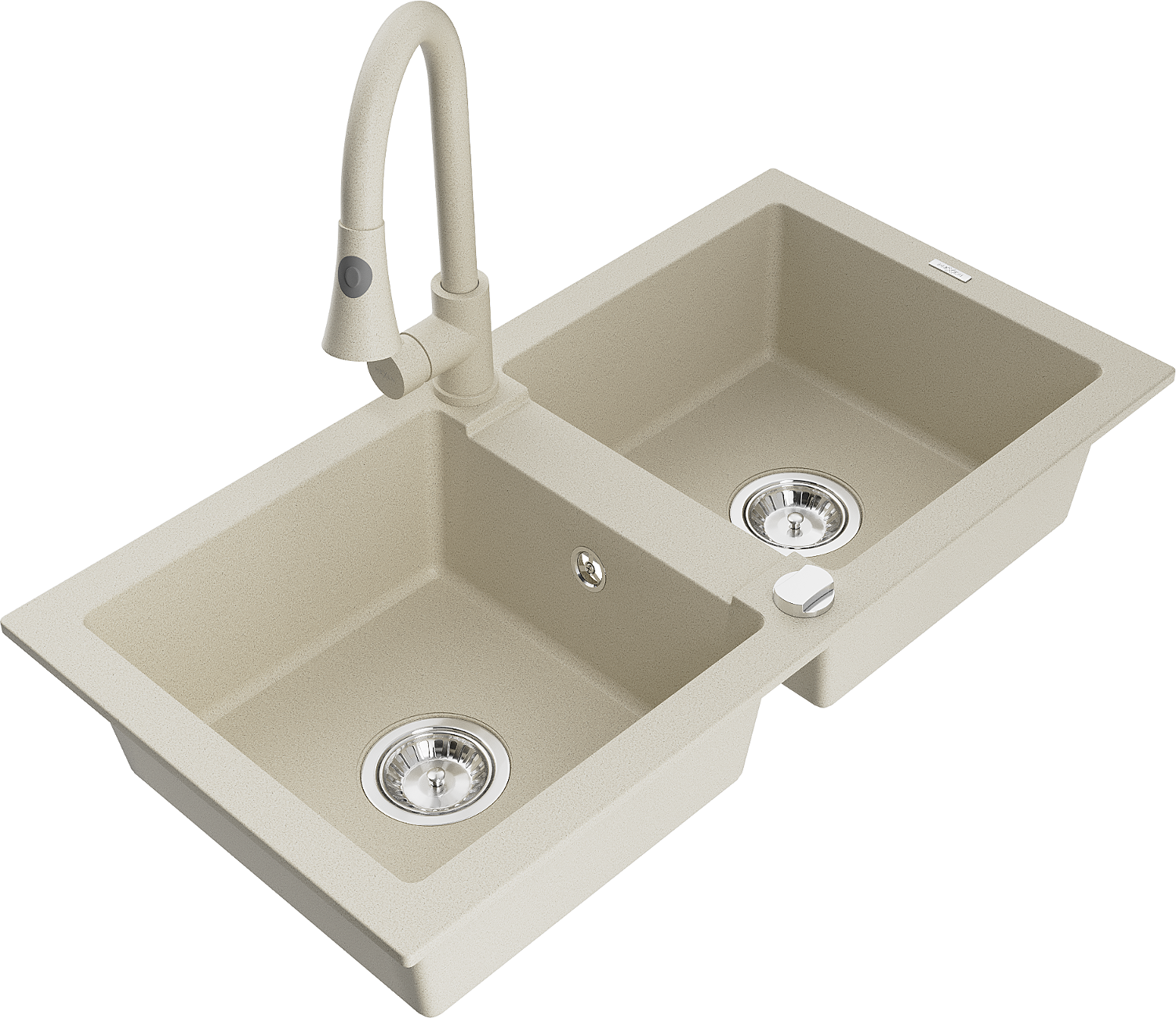Mexen Mario 2 rekeszes gránit mosogató Elia konyhai csapteleppel, bézs - 6504-69-670101-69