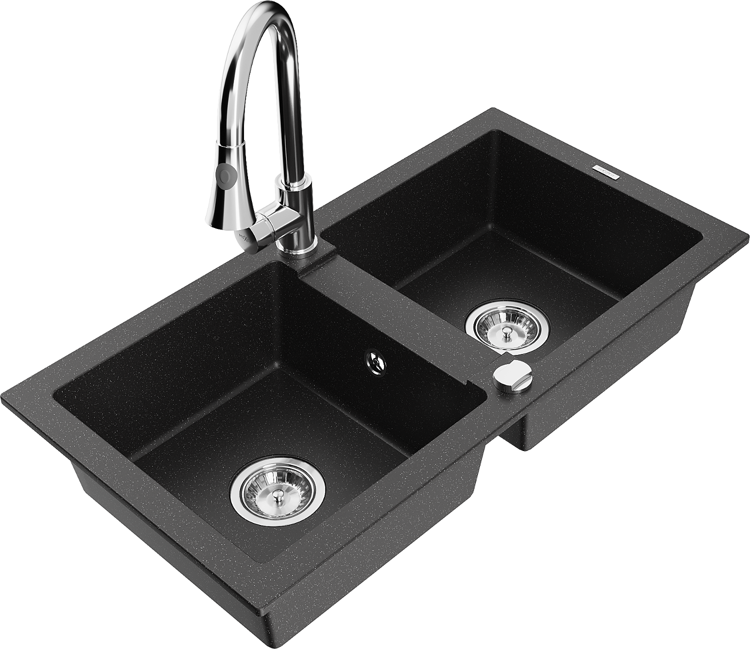 Mexen Mario 2 rekeszes gránit mosogató Elia konyhai csapteleppel, fekete/ezüst metál - 6504-73-670101-00