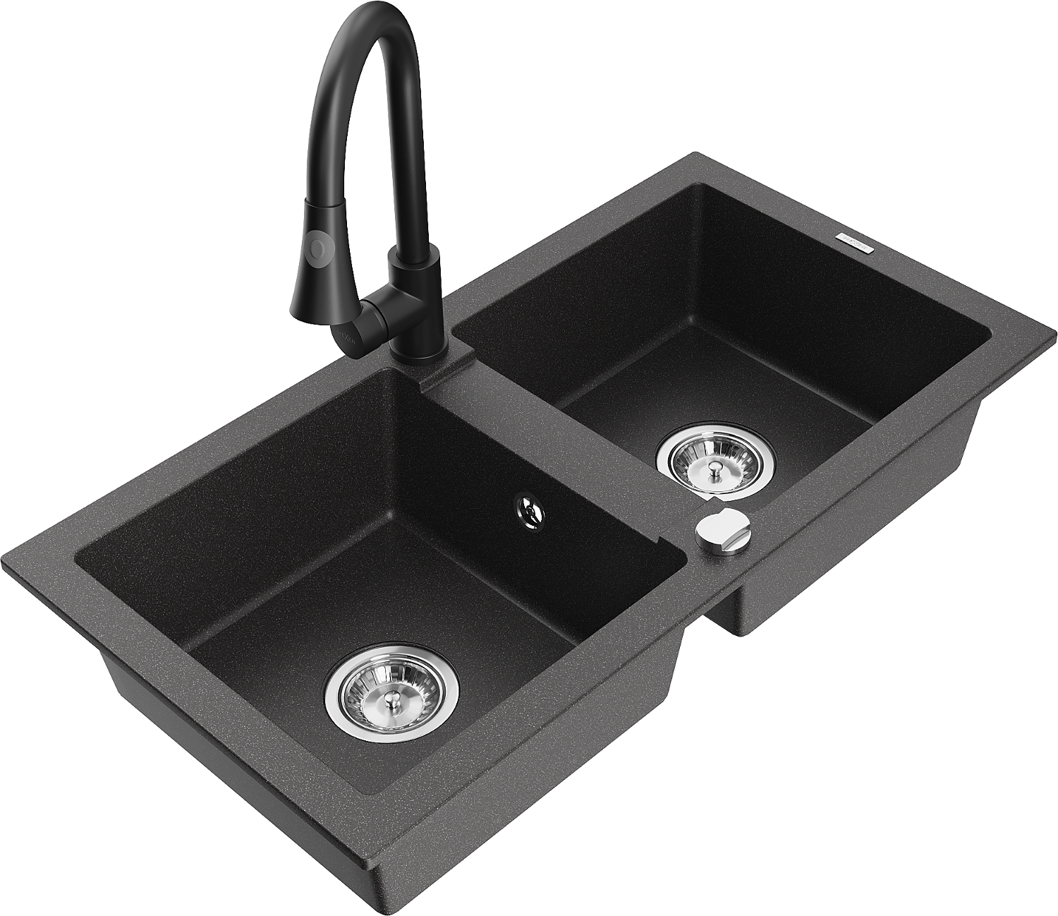 Mexen Mario 2 medencés gránit mosogató Elia konyhai csapteleppel, fekete pöttyös - 6504-76-670101-70
